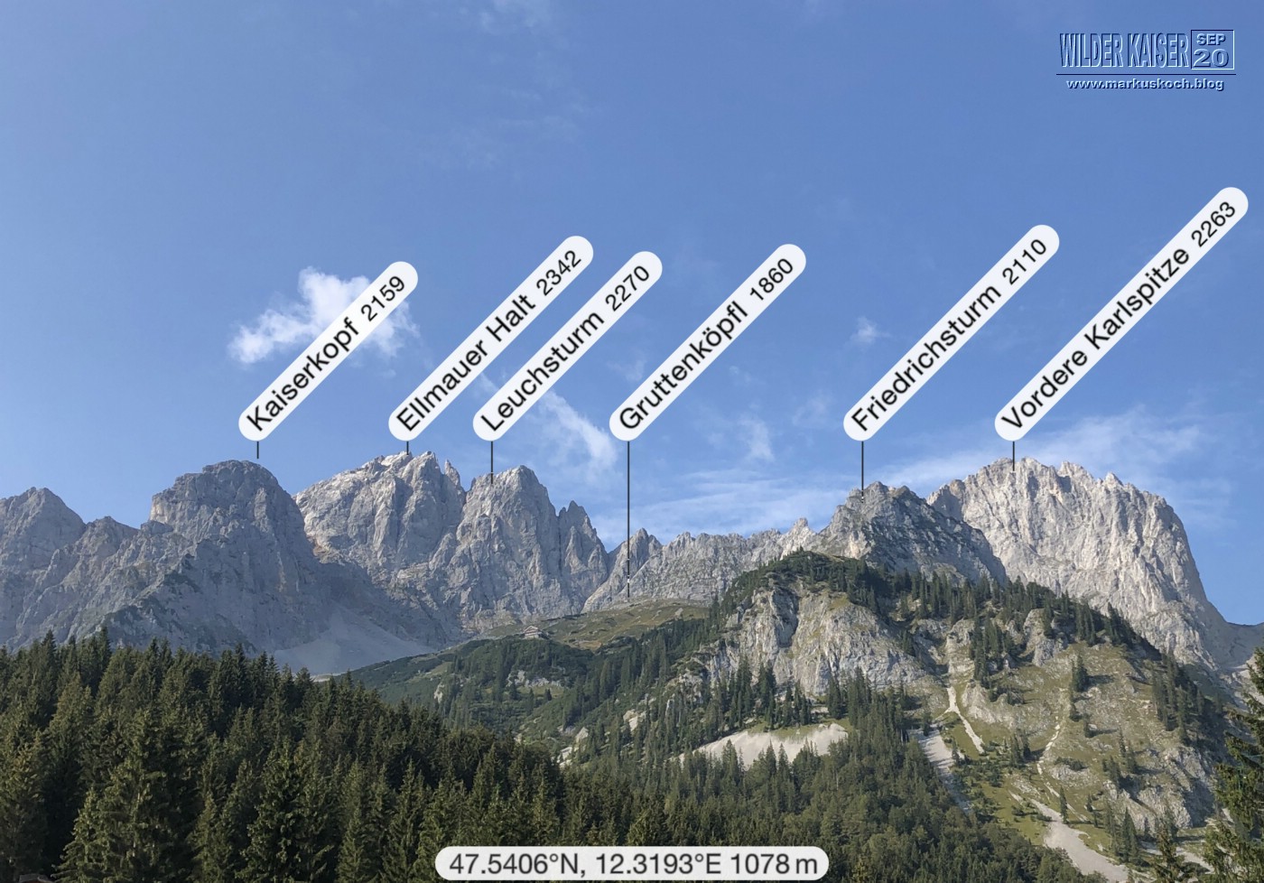 Do, 17.09. – Anreise & Wilder Kaiser | Wetter: bewölkt & sonnig, ca. 22°C