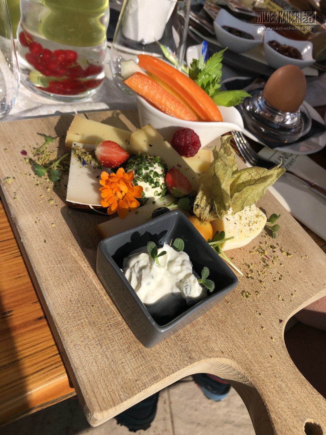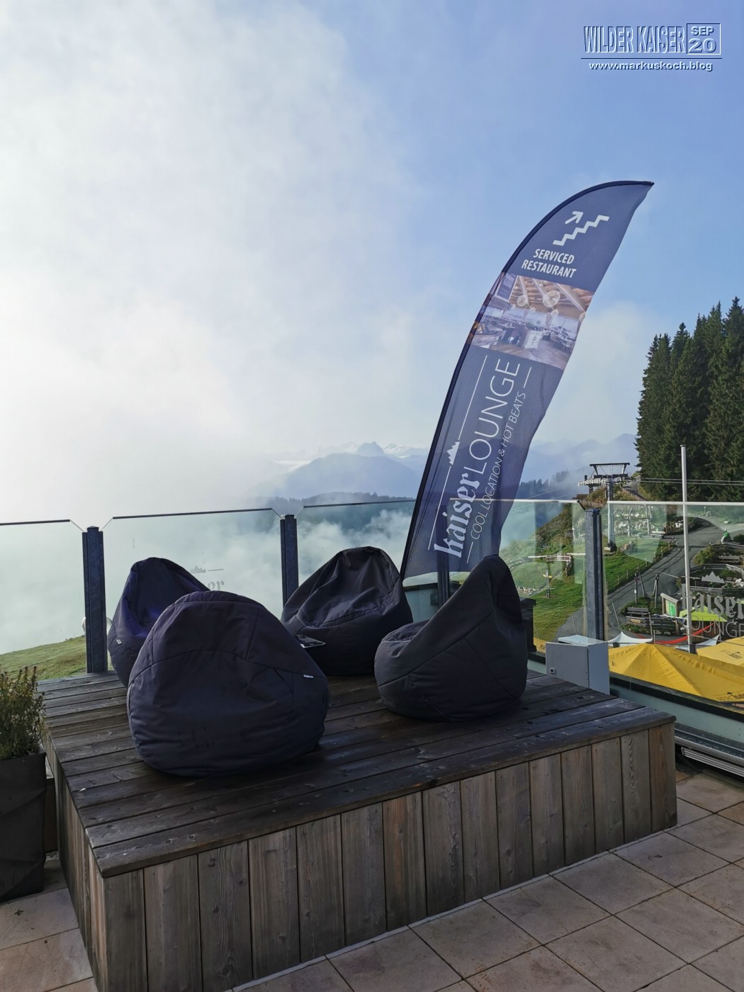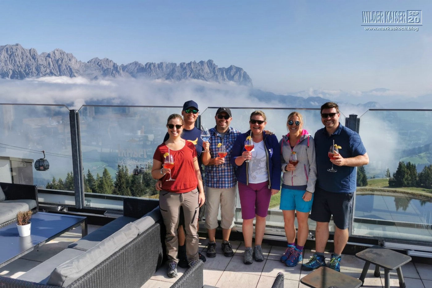 Marie & ich wanderten von der Tirol Lodge direkt in 2 h zum Hartkaiser Gipfel, wo wir in der Kaiser Lounge gemeinsam frühstückten.