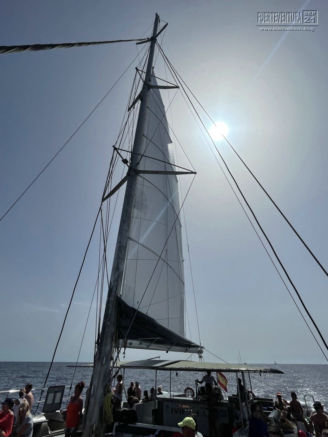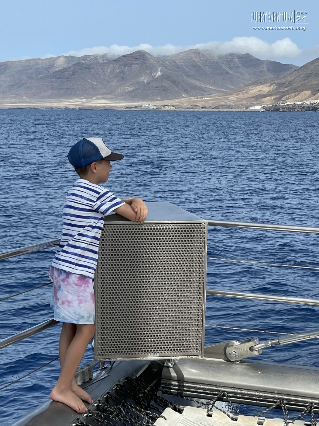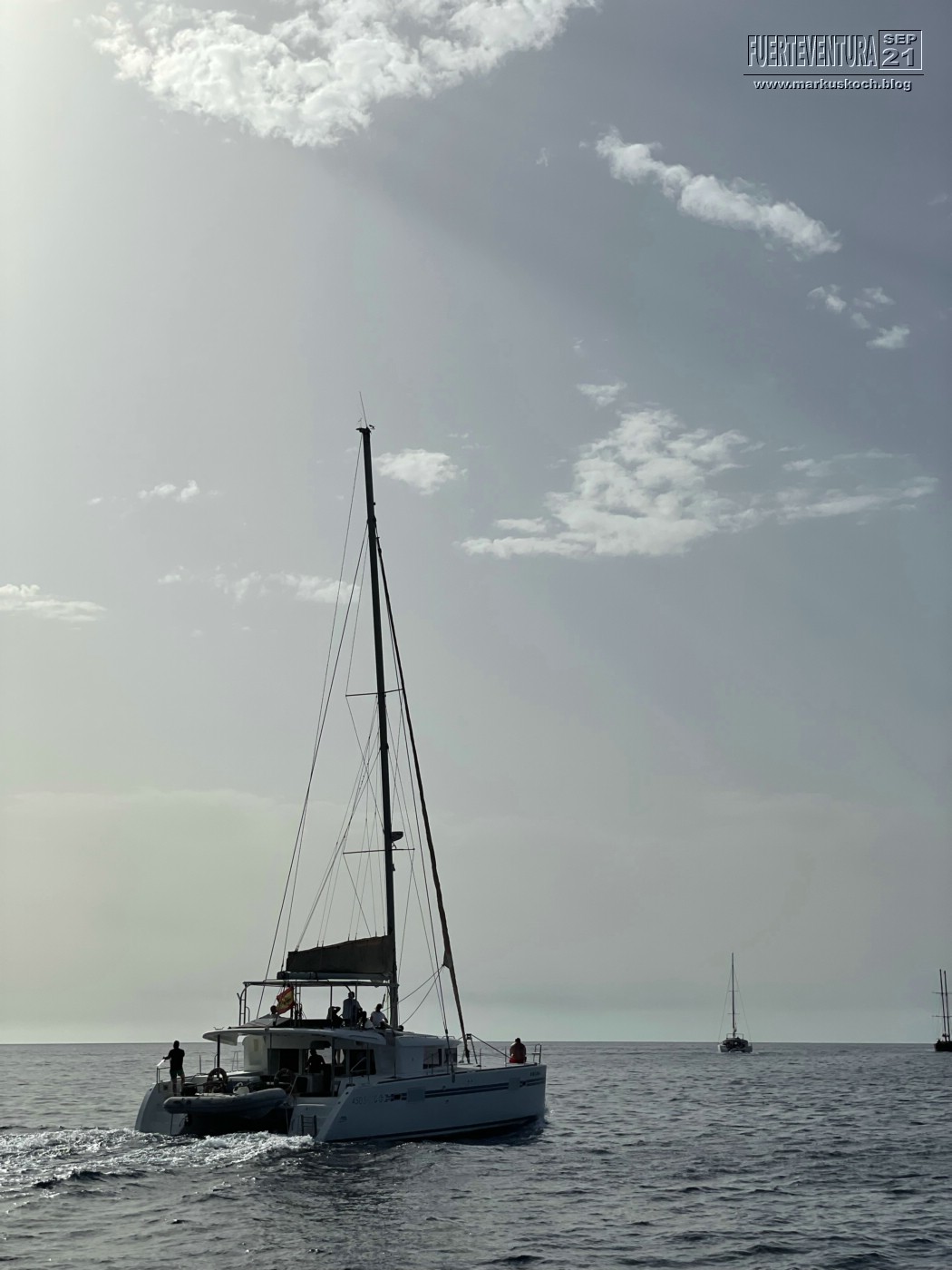 Tatsächlich konnten wir Schweinswale & viele Delfine sehen. Dann konnten wir noch Mittagessen und im Meer baden. Luca ist sogar vom Katamaran ins Wasser gesprungen. Mit einer kleinen Partyrunde endete der Ausflug wieder im Hafen von Morre Jable. Ein gelungener Ausflug.