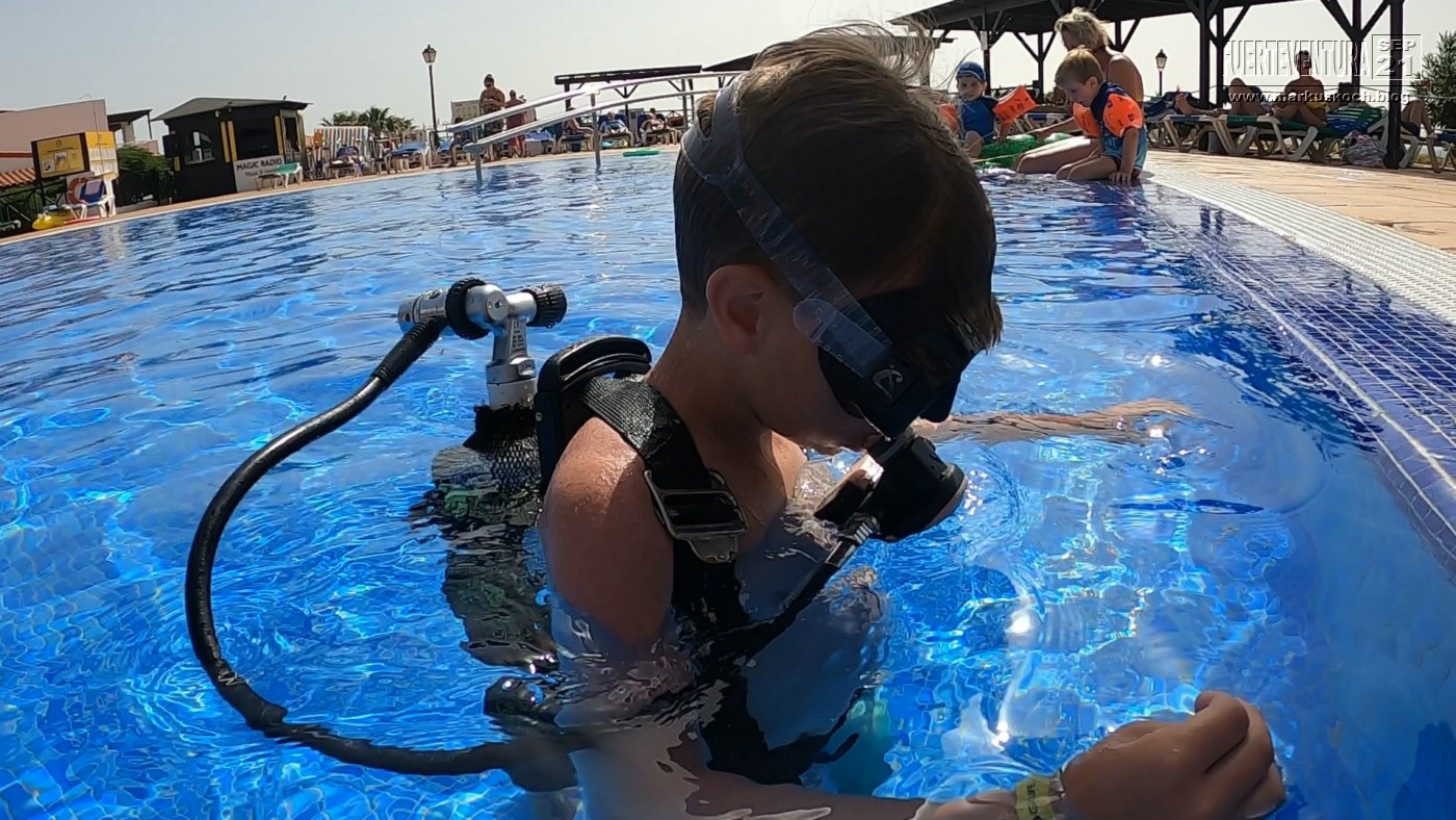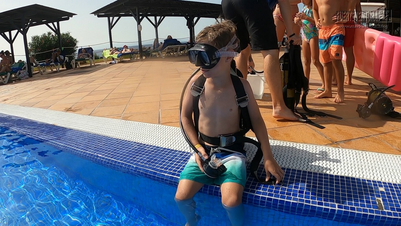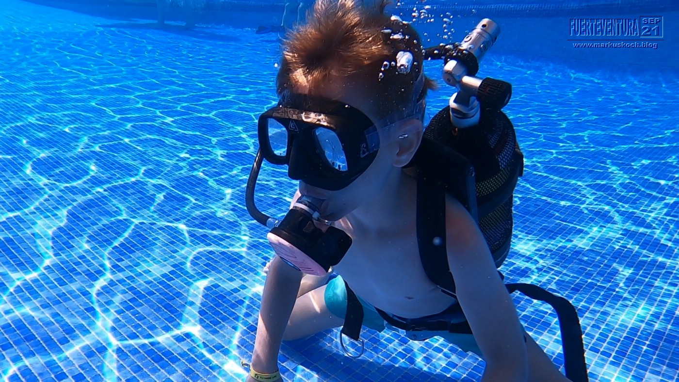 Vormittags bot die ansässige Tauchschule Schnuppertauchen an. Luca war begeistert.