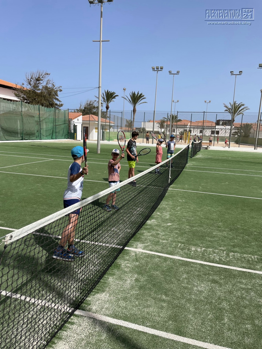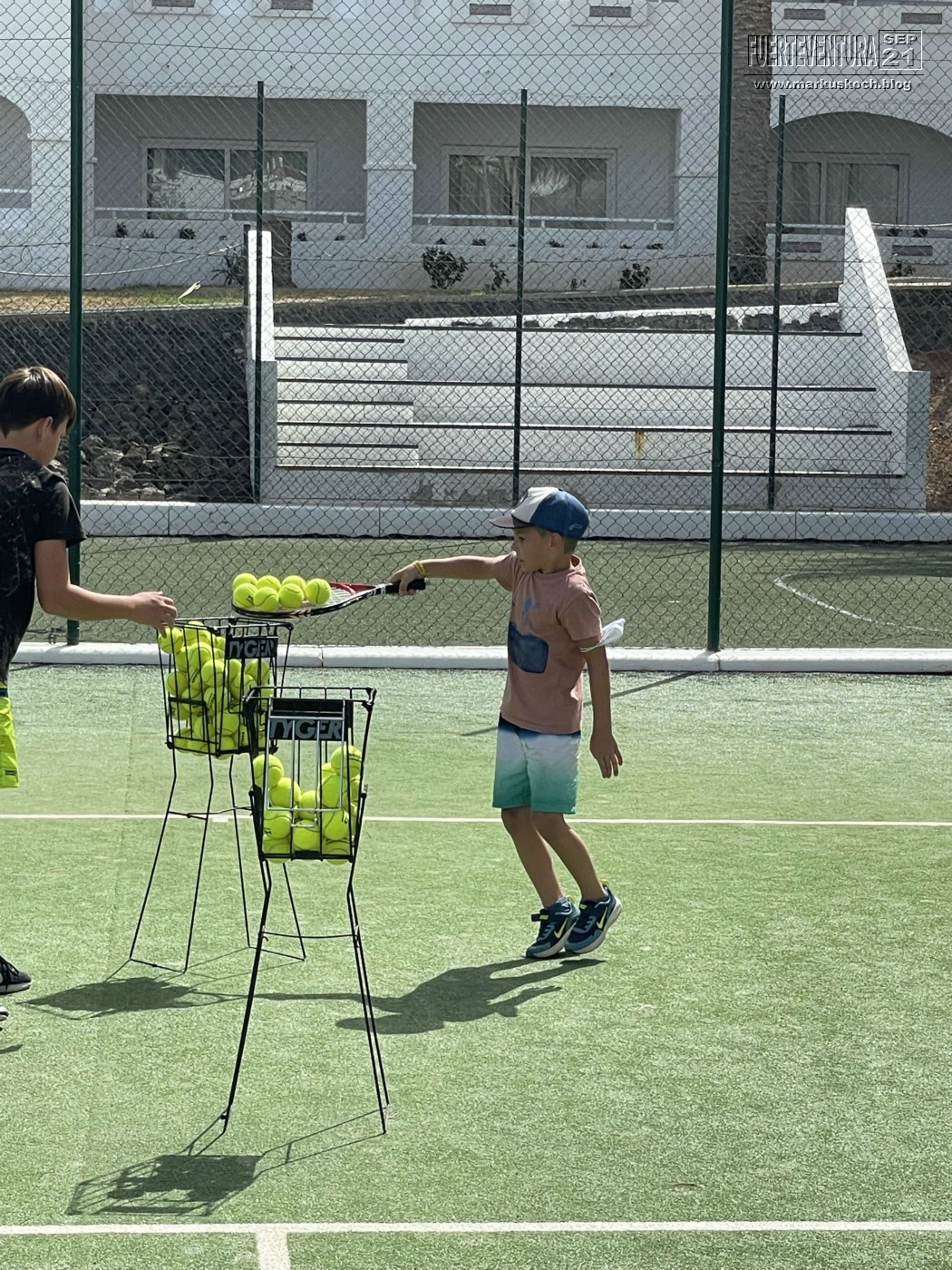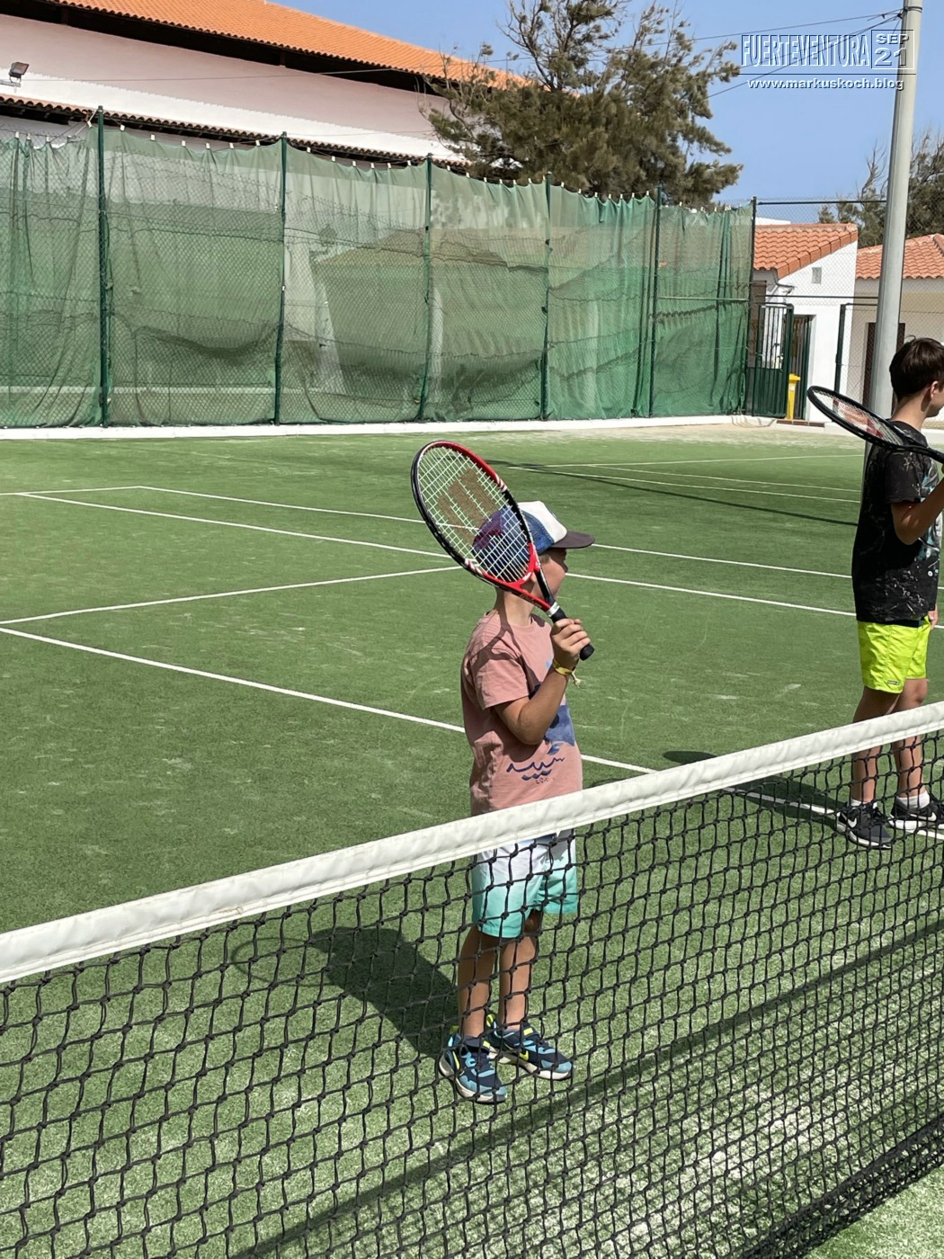 Er war nachmittags im Kids Club Tennis spielen.