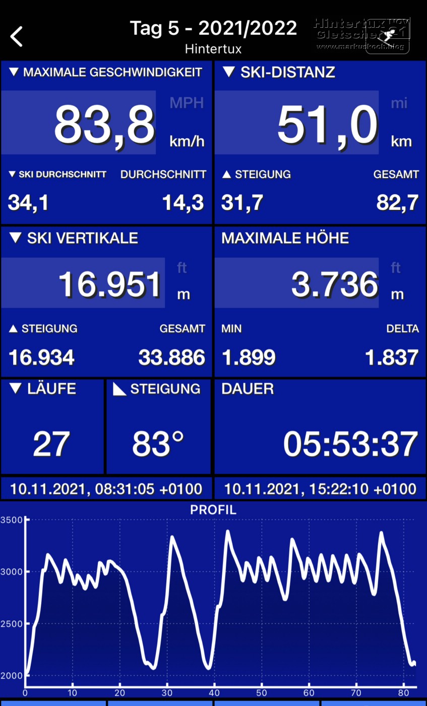 Mi, 10.11. – Hintertuxer Gletscher | Wetter: bewölkt, sonnig, -5 bis +1°C