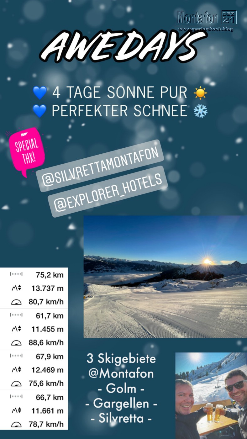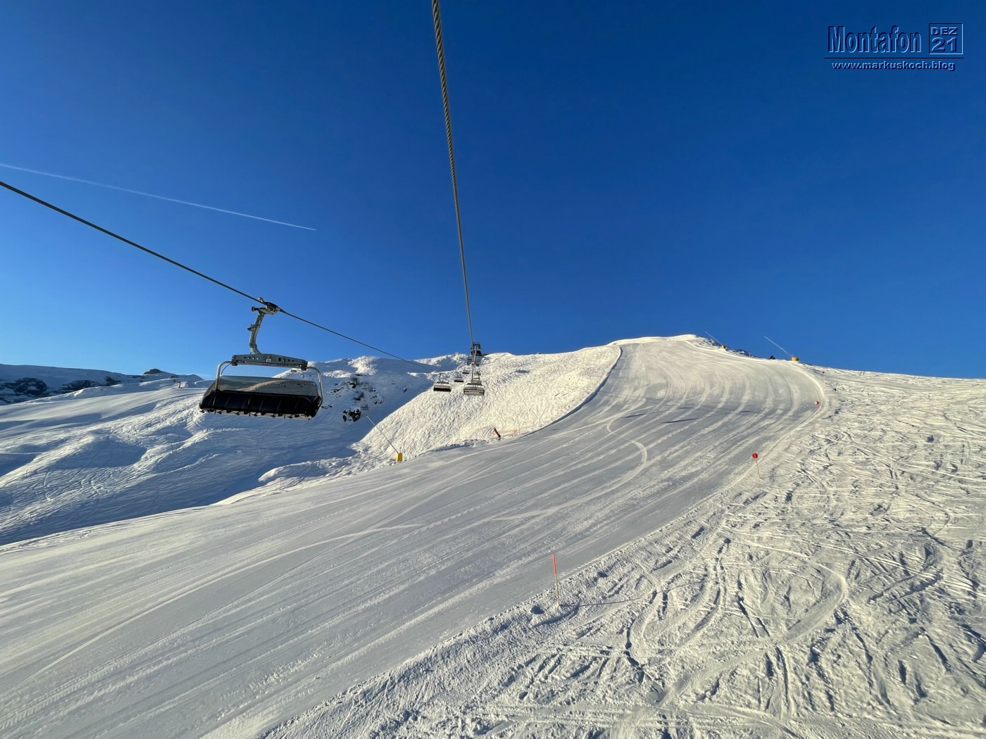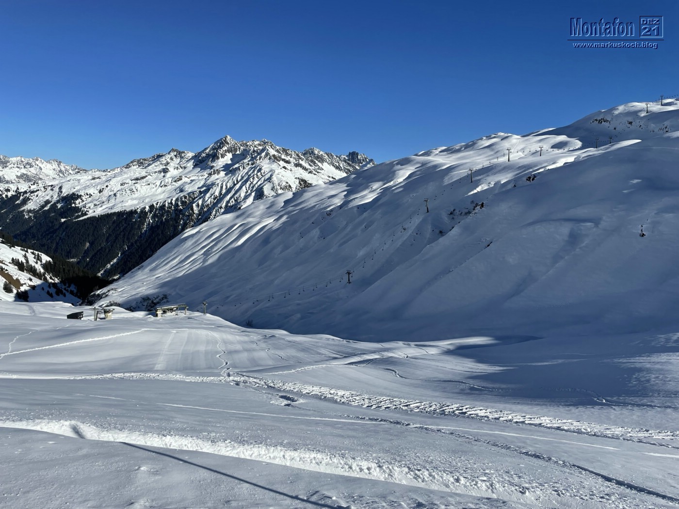 Der vierte Tag in Folge bei Mega Bedingungen. Heute im Skigebiet Golm, welches uns sehr positiv überraschte. Wieder fast nichts los und super tolle & anspruchsvolle Pisten. Auch hier war die Talabfahrt möglich. Das Tal lag heute jedoch in Wolken, aber es war wundervoll Mystisch.