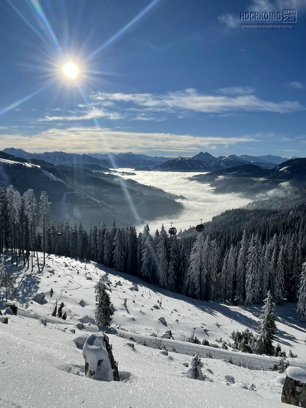 In Maria Alm selbst war es wohl den ganzen Tag tief bewölkt. Wir fuhren aber direkt hoch hinaus bzw. hinüber Richtung Dienten/Mühlbach, wo die Sonne steckte.