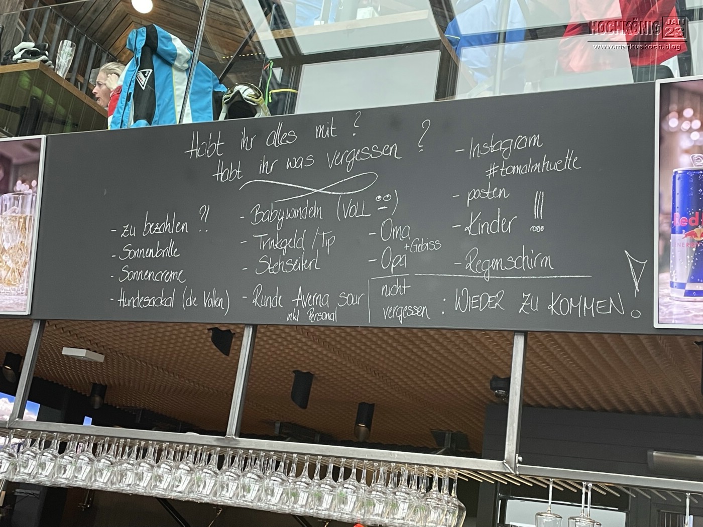 Apres Ski war nicht so arg angesagt, aber es gab eine super stylische Hütte „TOM“ an der Bergstation der Natrunbahn und bei uns am Hotel den Schluckspecht als Schirm.