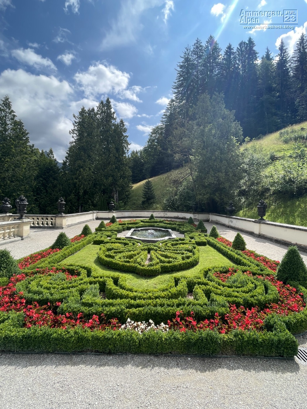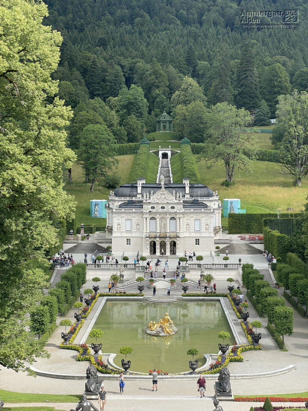 Nach einigen Überlegungen liehen wir uns E-MTBs aus, fuhren dann zum wunderschönen Schloss Linderhof, welches einst von König Ludwig II. (wie auch Neuschwanstein) erbaut wurde. Es war für ihn sein Lieblingsschloss.