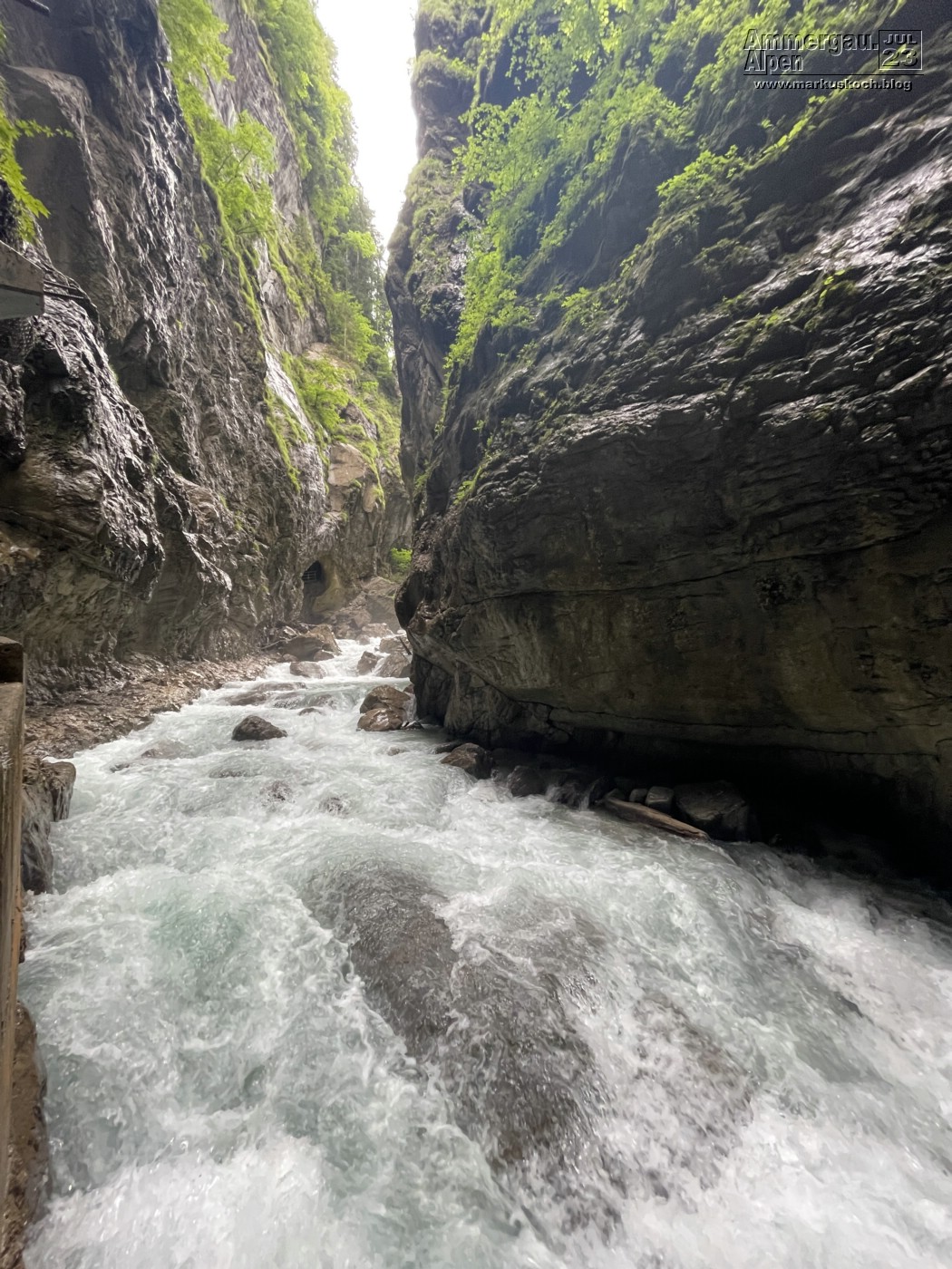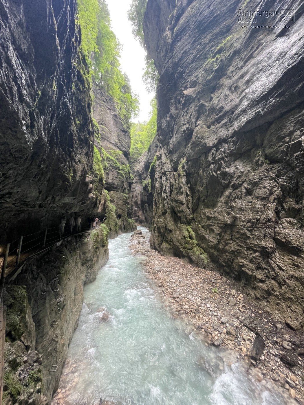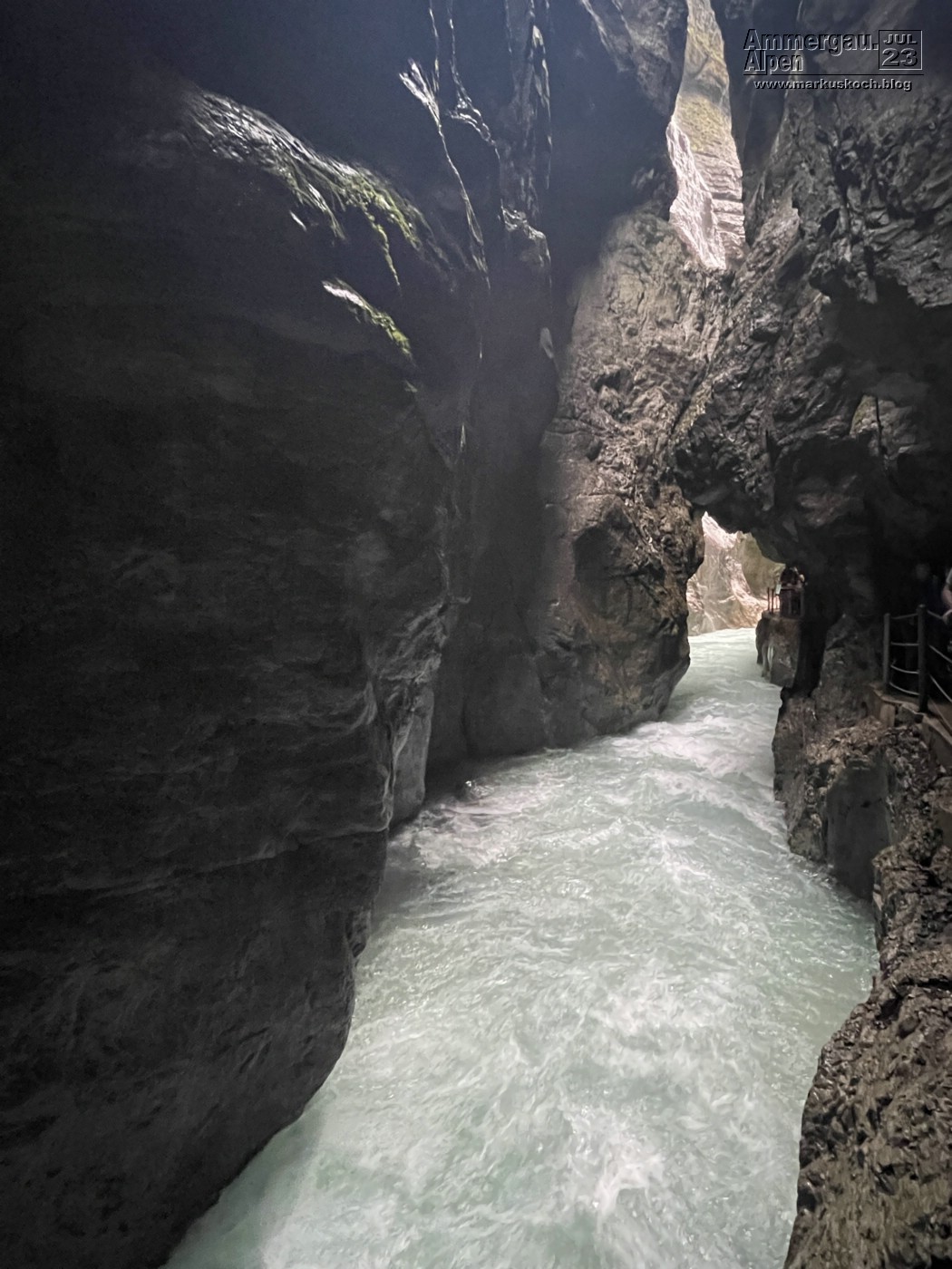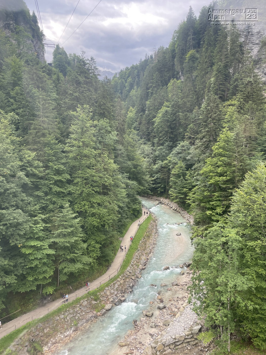 Das Wetter war wieder unbeständiger gemeldet. So fuhren wir zur Partnachklamm nach GAP, mit dem Lift dort hoch und von oben nach unten gegen den Verkehr wieder zum Eingang.