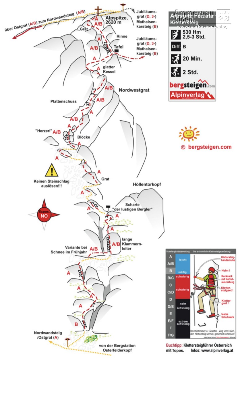 So, 23.07. – Klettersteig Alpspitze / GAP– Wetter: sonnig/leicht bewölkt, ca. 25°C