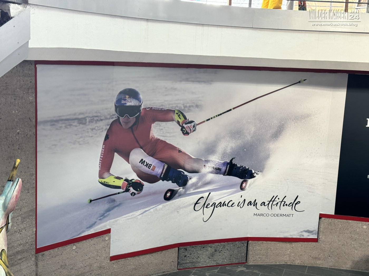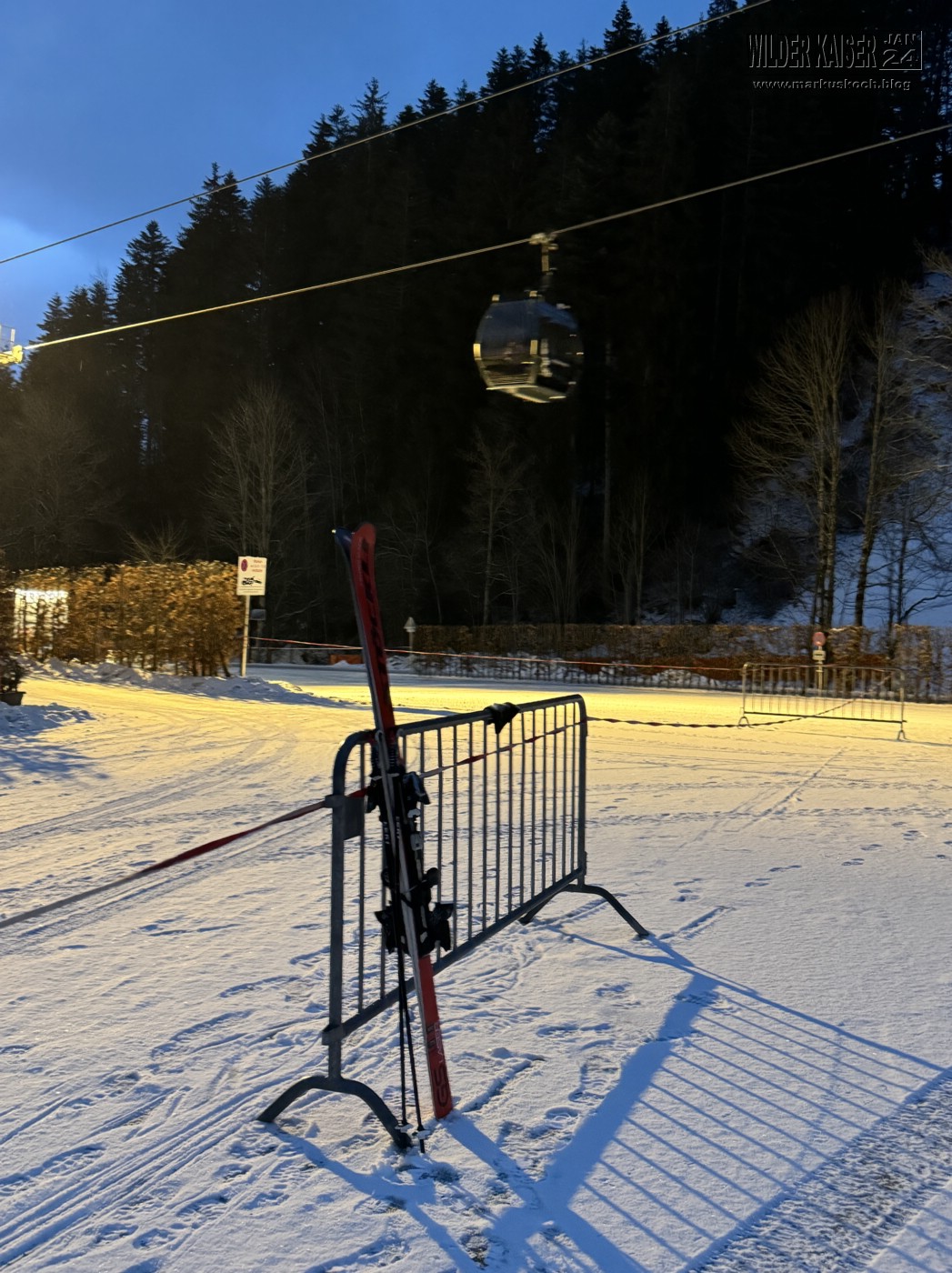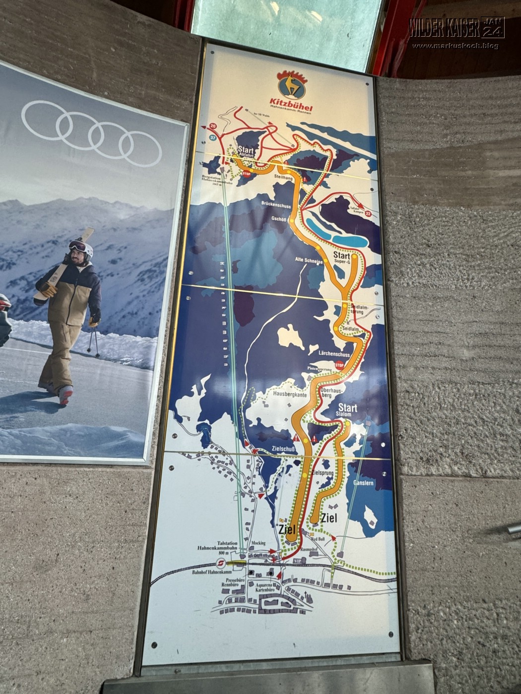 Heut war ich alleine, bzw. war zufälligerweise noch Ellen aus Aschaffenburg am Wilden Kaiser, am offiziellen Hahnenkammrennen mit einer Zuschauerkarte dabei. Gleich frühs starteten wir in Kirchberg und inspizierten die Streifabfahrt von oben bis unten. Wir konnten wirklich sehr nahe an der Piste stehen bzw. fahren.