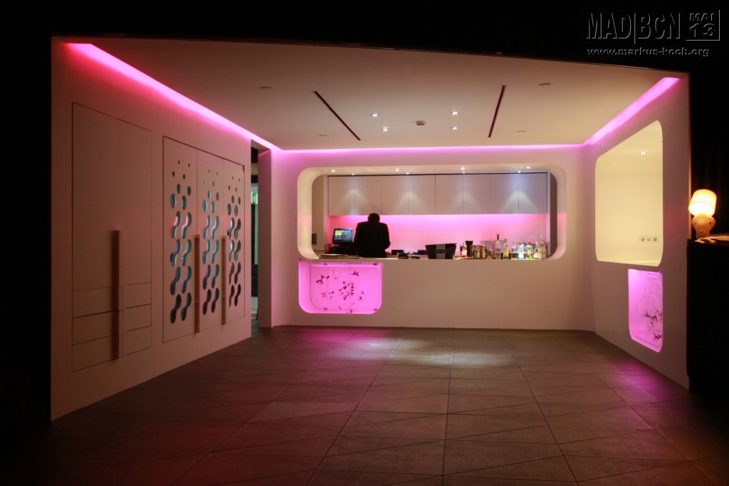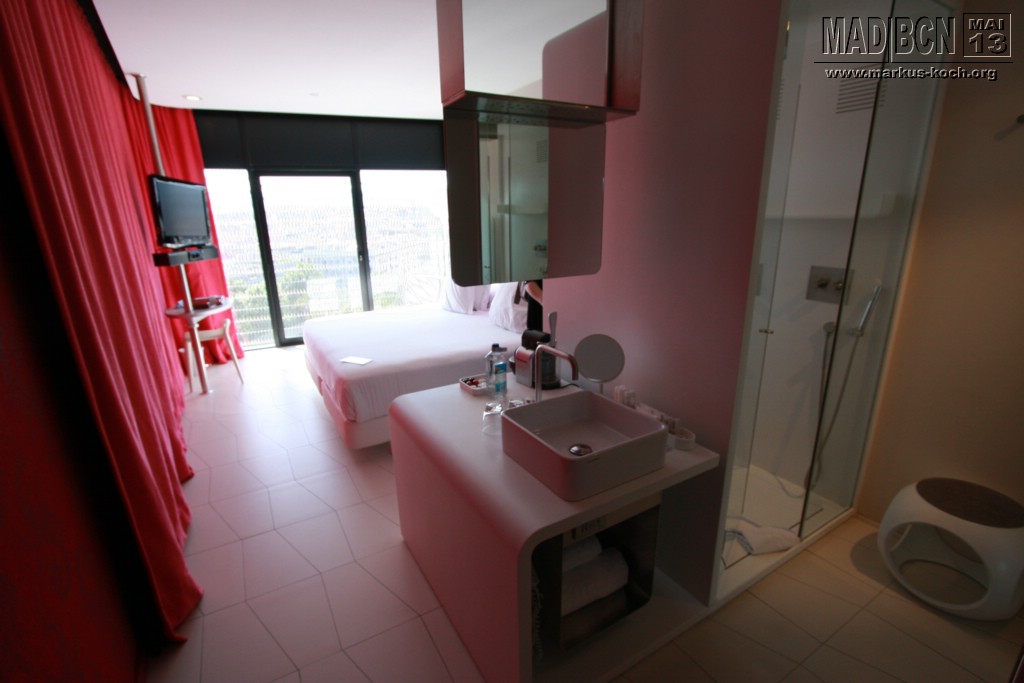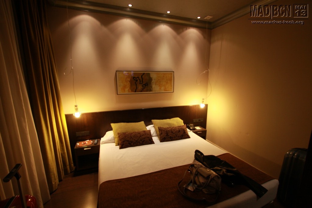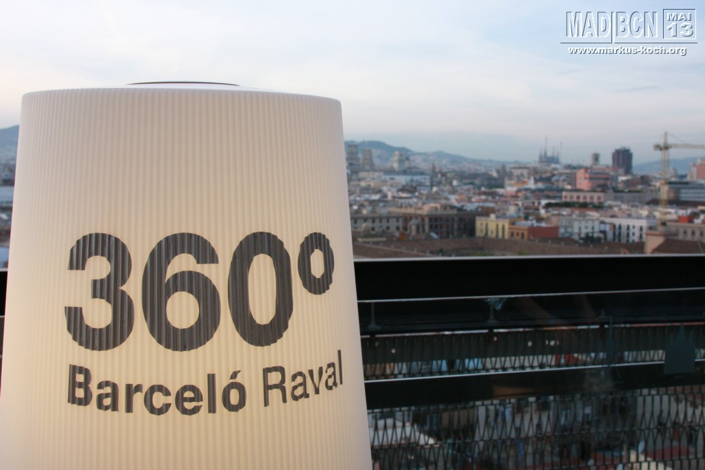 Um 19 Uhr gab es auf der Dachterrasse unseres Hotels Barcelo Raval einen von einem Bier gesponserten Chilloutarea. Bier und Flying Tapas bei Sonnenschein und auch hier der Blick auf fast ganz BCN! Ein Traum – und das spontan an meinem Geburtstag. So macht das Spaß! *G*