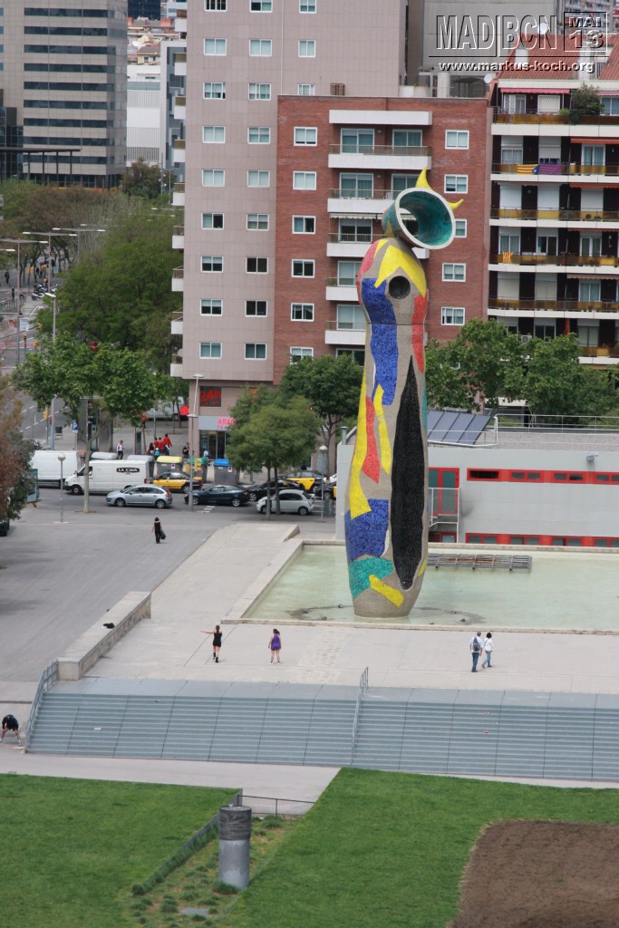 Das heutige Hauptziel sollte der Berg Montjuic sein. Angefangen haben wir am Placa d‘Espanya. An diesem Platz steht eine alte Stierkampfarena (Las Arenas) – jetzt nur noch als Shoppingcenter und Aussichtspunkt fungierend. Ein schöner Ausblick auf den Brunnen des Placas, den zwei 47 Meter hohen Türmen (ähneln dem Glockentrum des Markusdoms Venedigs) und auf das Palau Nacional (Nationalpalast). Dort liefen wir dann auch den Berg hinauf am Nationalpalast und dem Olympiagelände (1992) vorbei bis zur Seilbahn zum Castell de Montjuic auf dem höchsten Punkt des Bergs. Es war ein fantastischer Ausblick von da oben – die Stadt, der Hafen, der Flughafen, einfach alles von Barcelona! Genial – das ist auf jeden Fall ein Muss!