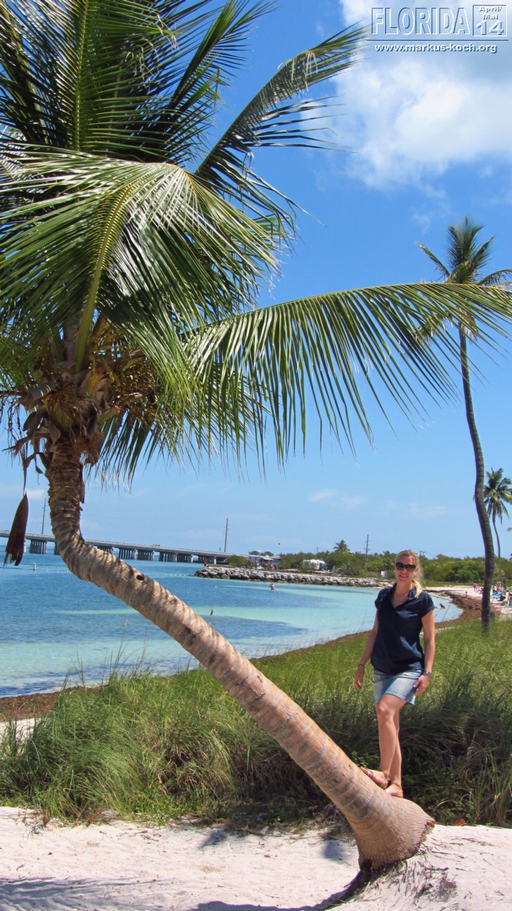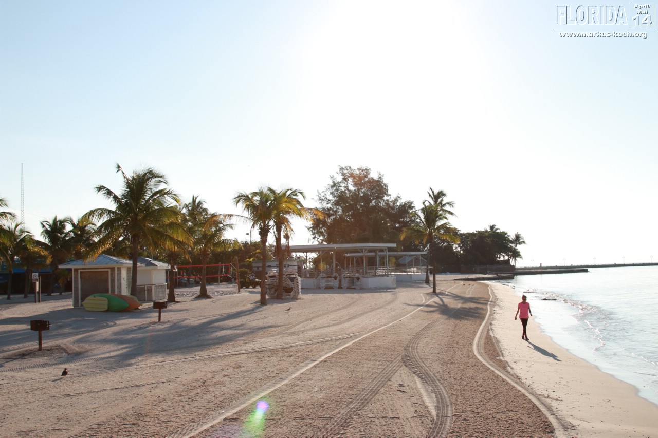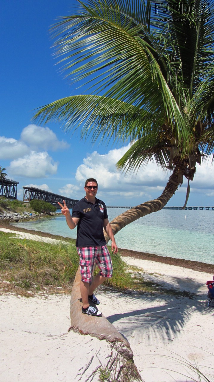 Nach dem Frühstück setzten wir uns Richtung Key West in Bewegung. Stopp haben wir im Bahia Honda State Park gemacht. Die kaputte Brücke ist immer noch kaputt. Von hier oben sah man auch ein paar Haie unten im Meer umherziehen 🙂 Ein paar Meter weiter schwammen andere Besucher im Wasser – gehört hier scheinbar einfach dazu 😉