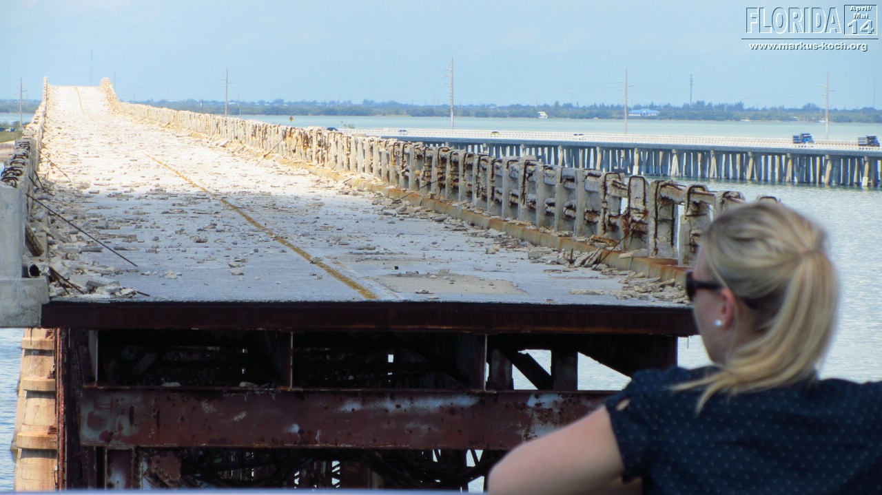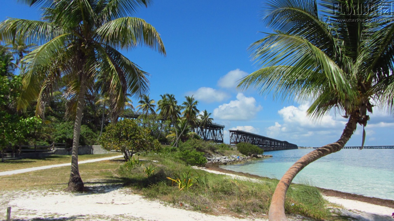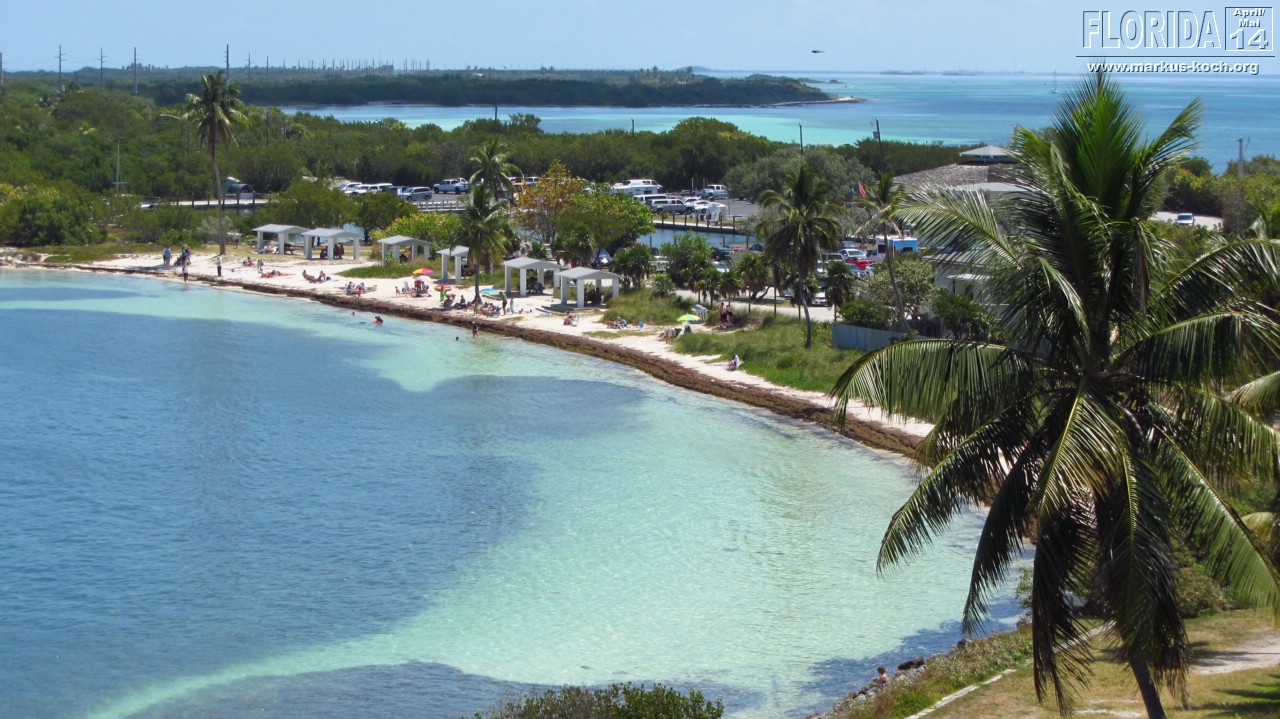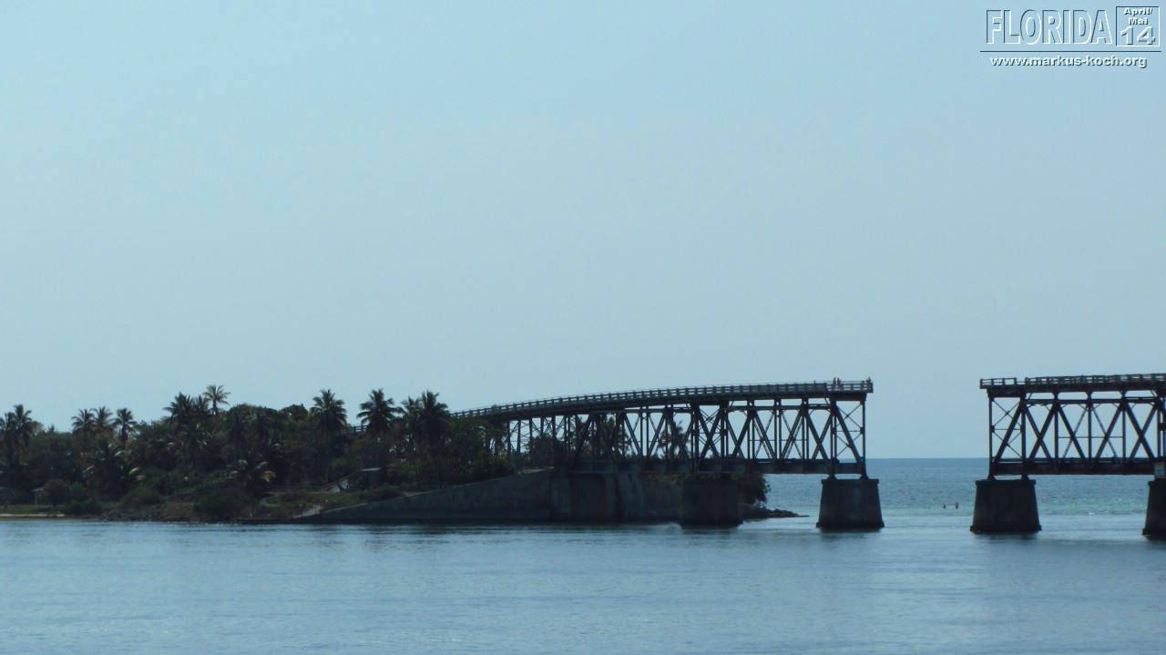 Nach dem Frühstück setzten wir uns Richtung Key West in Bewegung. Stopp haben wir im Bahia Honda State Park gemacht. Die kaputte Brücke ist immer noch kaputt. Von hier oben sah man auch ein paar Haie unten im Meer umherziehen 🙂 Ein paar Meter weiter schwammen andere Besucher im Wasser – gehört hier scheinbar einfach dazu 😉