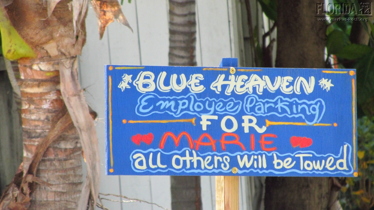 Da wir zeitig wach waren beschlossen wir vor dem Frühstück noch schnell mit den Fahrrädern zum Southernmost Point zu fahren, um den Fotoschlangen zu entfliehen. Nach dem leckeren Frühstück auf der Terrasse klapperten wir noch ein paar Hotspots ab: Lighthouse (super Blick von da oben über ganz Key West), Ernest Hemingway House (waren aber nicht drinnen), Fort Zachary Taylor Historic State Park (Fort errichtet 1845), Bahamas Village mit seinen Wandgemälden und einem echt coolem Restaurant/Bar „Blue Heaven“. Der Mojito um 12 Uhr Mittags bei dieser Hitze hat ganz schön gefetzt 😉