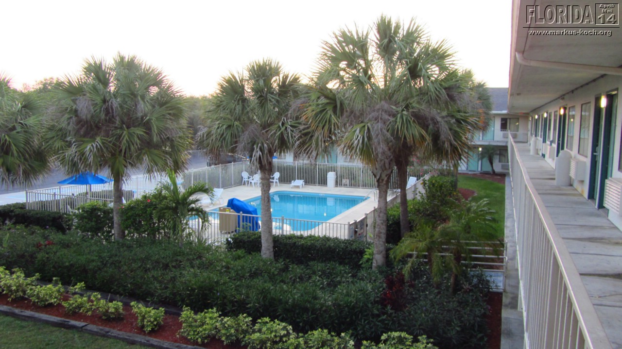 Abends kamen wir im Motel 6 Fort Pierce an – ganz schrecklich! Dreckig, die Türen schlossen nicht richtig, wir haben uns sehr unwohl gefühlt, aber es war leider zu spät umzubuchen. Die eine Nacht haben wir trotzdem überstanden. Ich kenne Motel 6 ganz toll gepflegt von der Westküste und war echt entsetzt. Das war es für mich erstmal in dieser Motelkette.