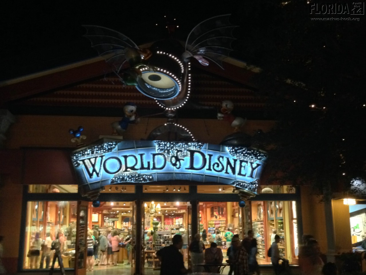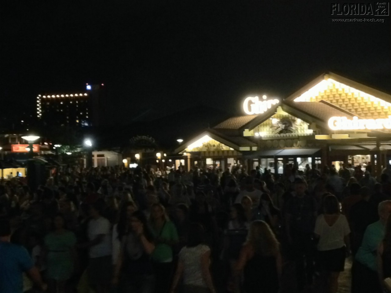 Das Hotel „The Point Orlando“ ist Gott sei Dank wieder Spitze! Nach einem leckeren Abendessen bei T.G.I. – Fridays besuchten wir noch kurz Downtown Disney. Allein das ist schon ein Spektakel für sich! Von einem riesigen Gebäude für Cirque du Solei rund herum an einem angelegten See verteilt dutzende Disney Geschäfte und Restaurants mit Live Musik und abertausenden Disney-Fans. Darunter auch der weltgrößte Disney-Shop überhaupt. Irre! Es gibt wirklich alles von der Maus und derer „Angehörige“.