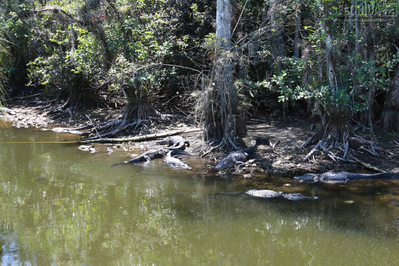 Der Weg nach Miami führte uns über den Tamimi Trail durch die Everglades. Ungefähr in der Mitte gibt es einen geschotterten Weg „Loop“. Dort liegen überall am Rand hunderte Krokodile herum und lassen es sich gut gehen.