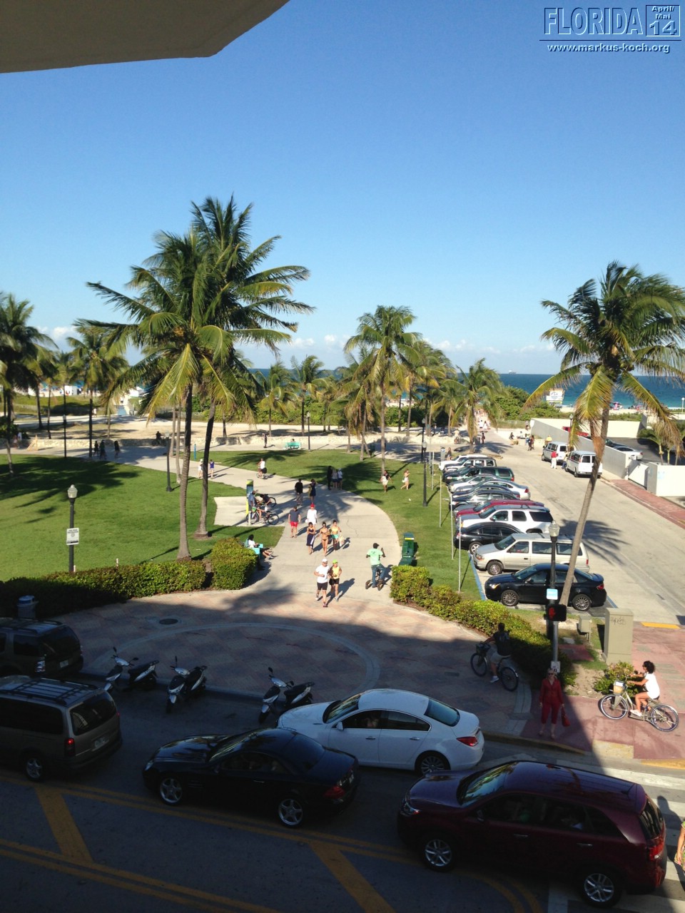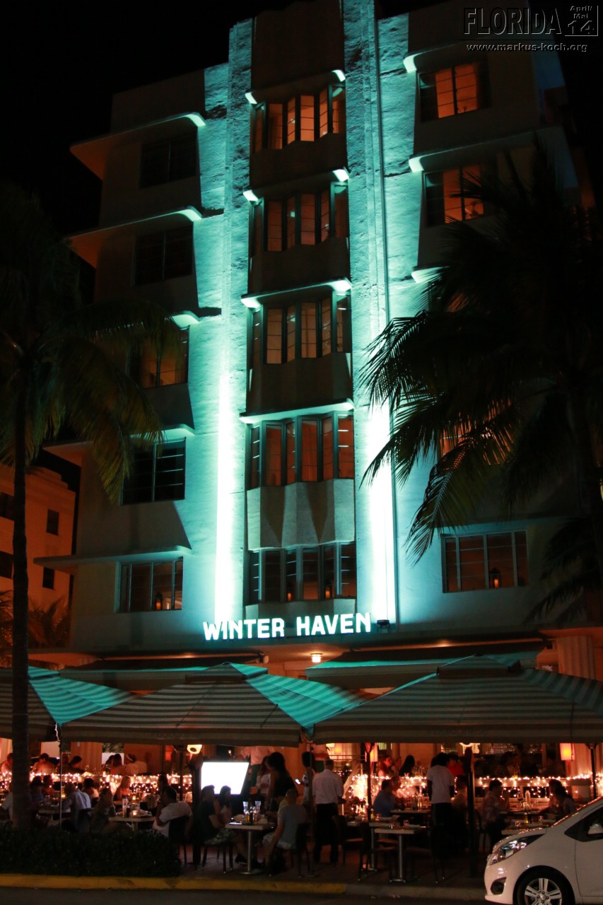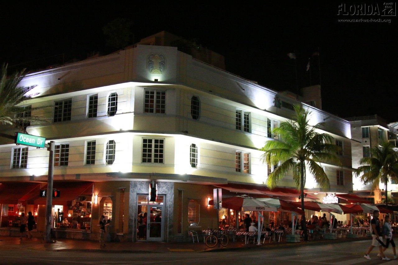 Aus dem Grund hat es dann auch etwas gedauert, bis wir direkt an unserem Hotel „Bentley“ am Ocean Drive waren. Aus unserem Fenster des Hotels oder von oben am Pool konnten wir das lustige Treiben schon erkennen. Hochgebockte Autos, aus denen der Gangster-Sound vibrierte. Es war am Ocean Drive die Hölle los, wir sind mal hoch und wieder zurück gelaufen.