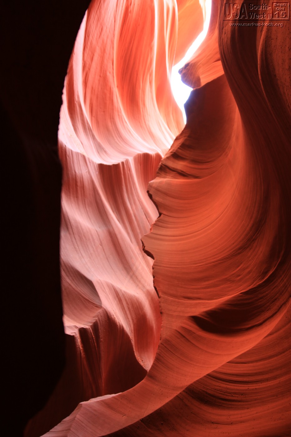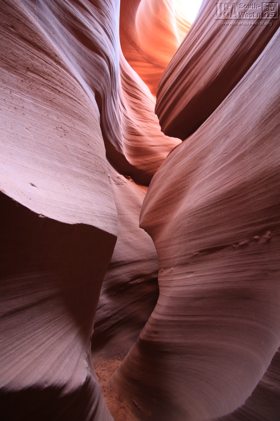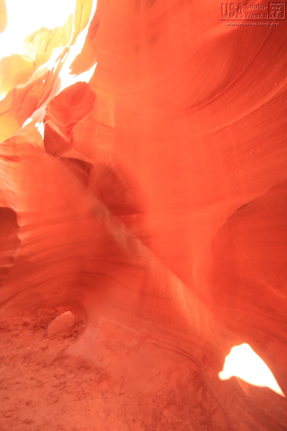 Nachdem der Lower Antelope Canyon wieder offen hatte, konnten wir nicht anders um doch einen Blick zu riskieren. $28 pErw. ärmer ging die Tour auch schon los. Über Treppen wurden wir zum Eingang gebracht, von wo es dann der „Schlucht“ entlang ging. Auch dieser war wunderschön! Heller und farbiger als der Upper tags zuvor.