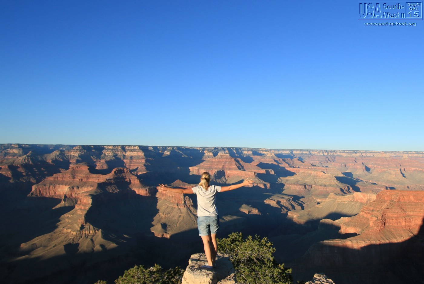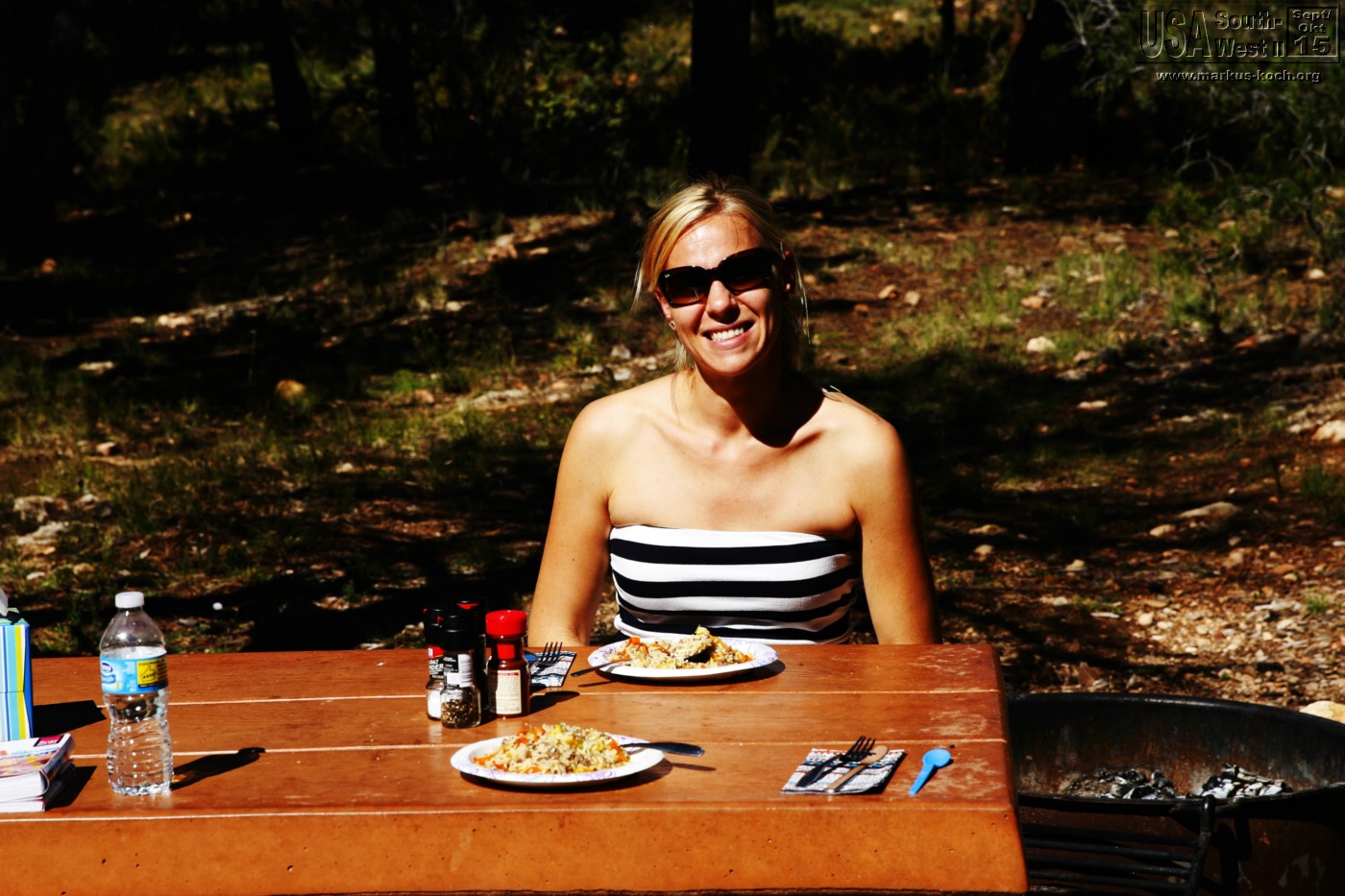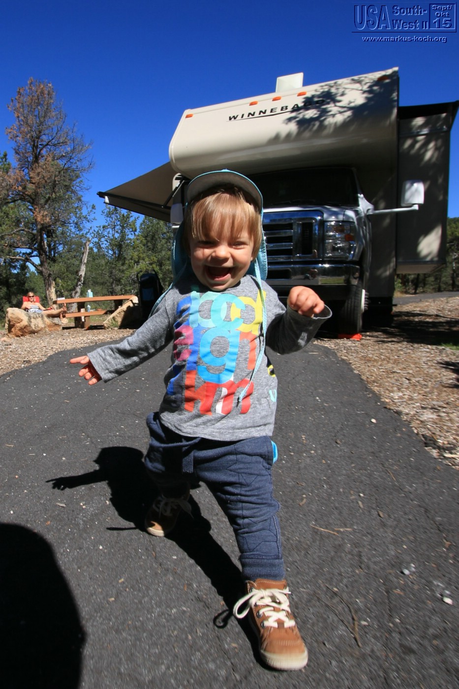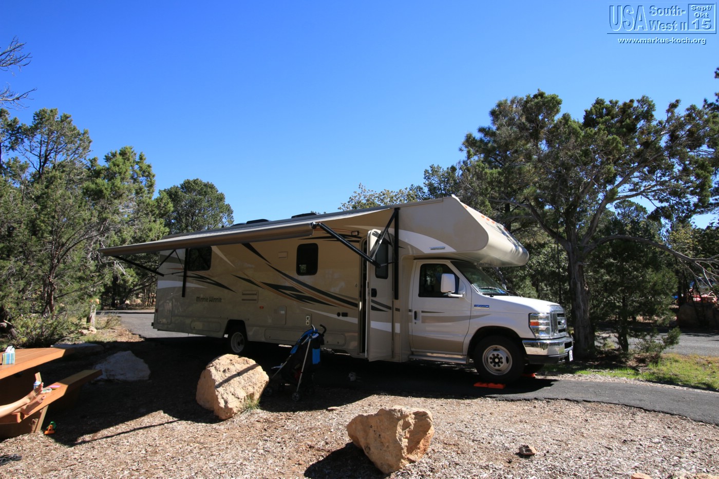 Um 8 Uhr war ich auch schon wieder zum Frühstücken am RV zurück. Heute wollten wir am Nachmittag die Westroute am Grand Canyon Rim laufen um zum Sonnenuntergang.