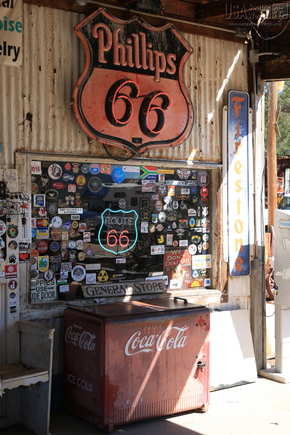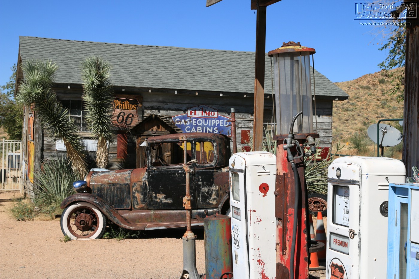 Unsere Fahrt ging zügig vom Grand Canyon über Seligman auf die Route 66 bis zum Hackberry Fotostopp. Das Teilstück war komplett langweilig, würde ich niemanden empfehlen.