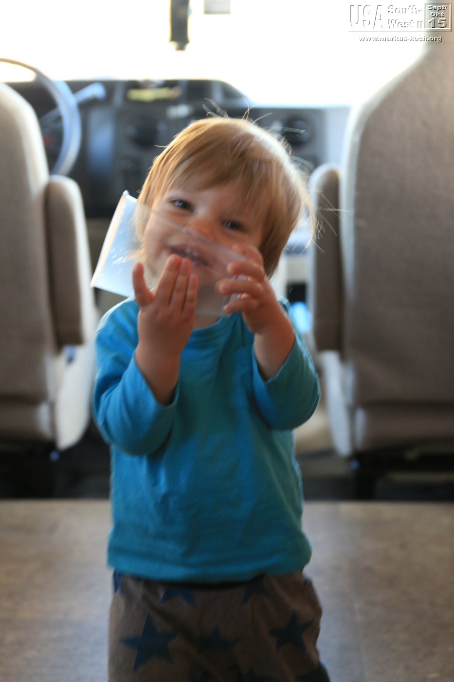 Marie fuhr wieder mal das WoMo – dieses Mal 20 Meilen auf dem Highway – bis Luca sich nicht mehr von mir im Kindersitz bespaßen lassen wollte 🙁 Super hat sie es auch dieses Mal gemacht 🙂