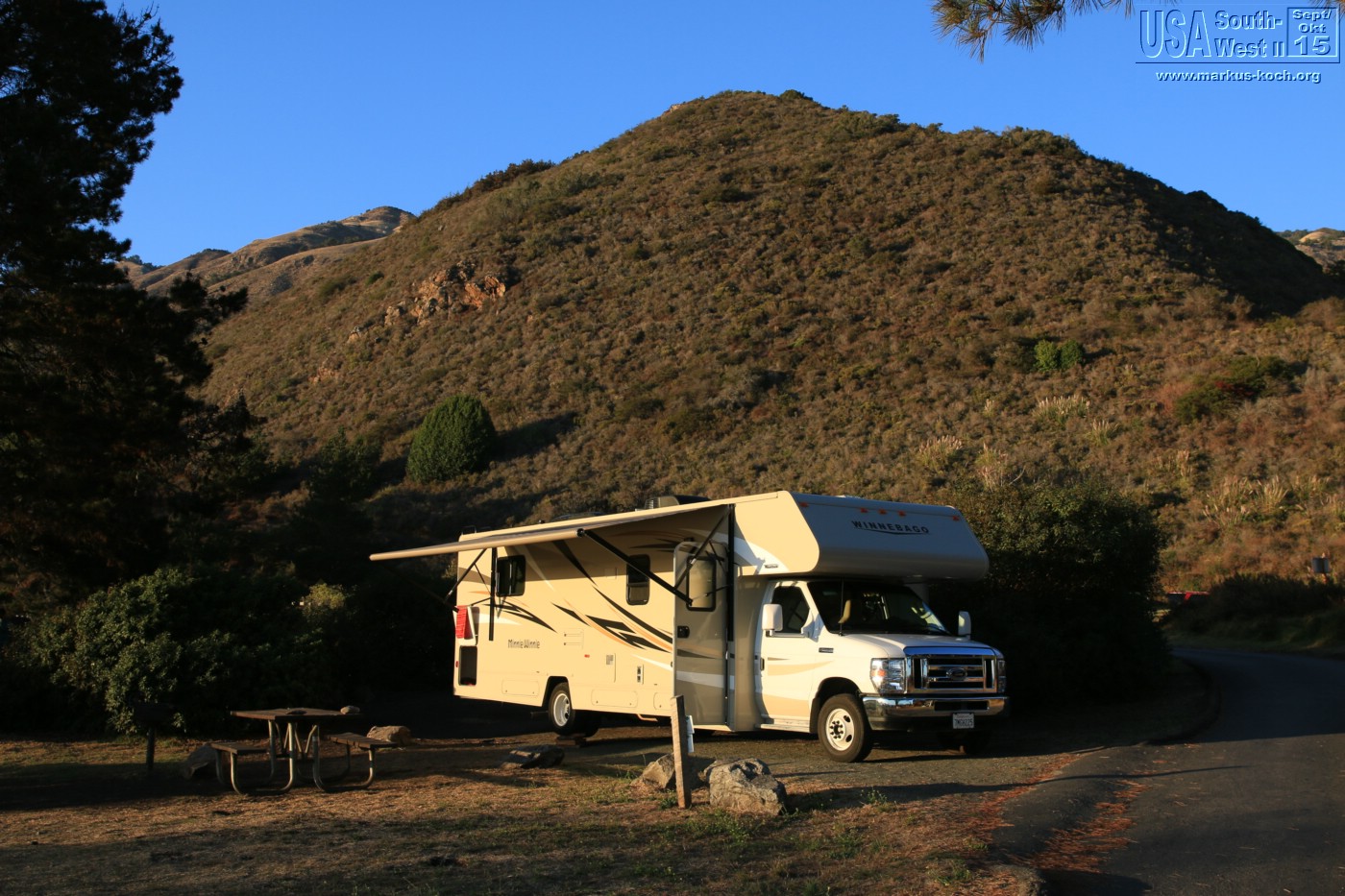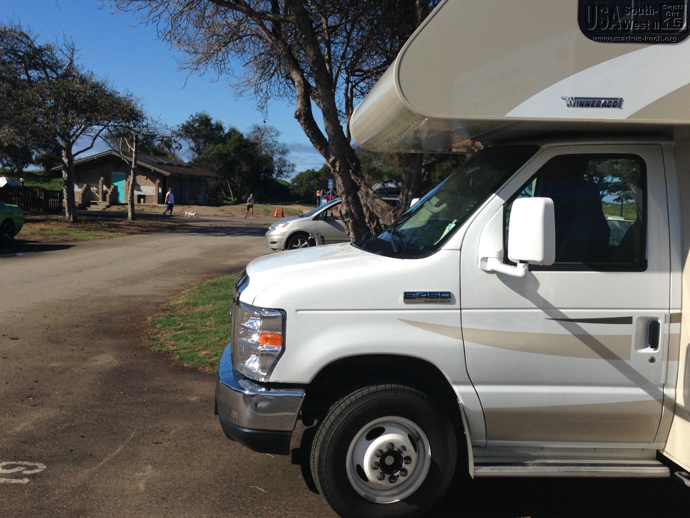 Am Wunsch-Campingplatz angekommen hat uns das Office aber leider abgewiesen, da wir kein Allradantrieb haben. Plan war, dass wir auf einem befahrbaren Strand übernachten wollten, was sicher eines der coolsten Abenteuer geworden wäre. Reservieren konnte man nicht und der Mann aus dem Office schickte uns zu einem anderen CG in der Nähe. Leider war dieser schon ausgebucht und wir wurden wieder weitergeschickt. Am Ende sind wir in Pismo Beach auf einem RV Resort gelandet. Mit Full Hockup – was bedeutet: Strom- und Wasseranschluss, Ablassroher für Black & Grey Water (Kacka & Abwasser). Das hat nun schonmal super geklappt. Jetzt wissen wir, wie das so vor sich geht 🙂
