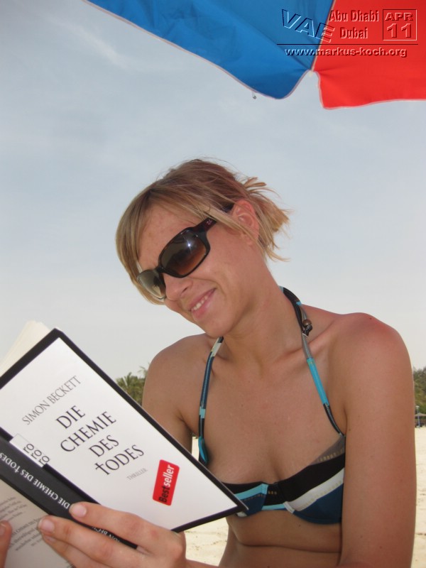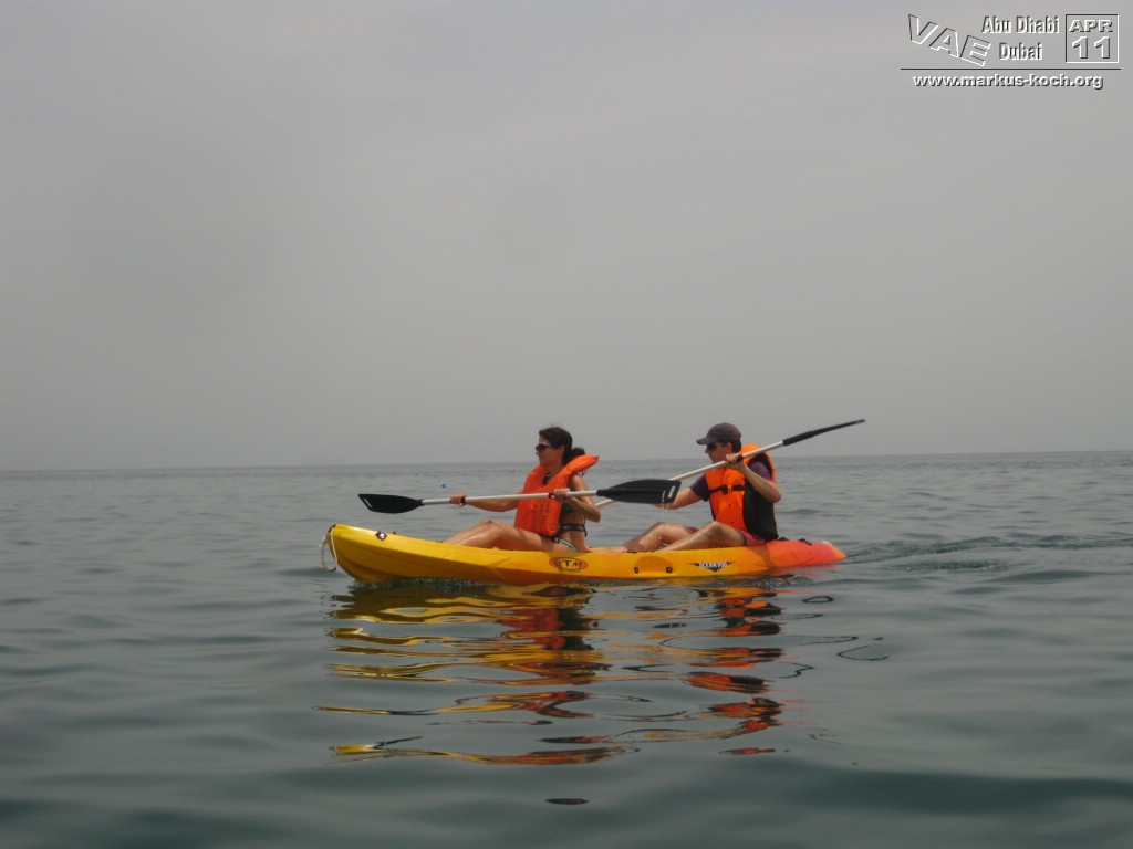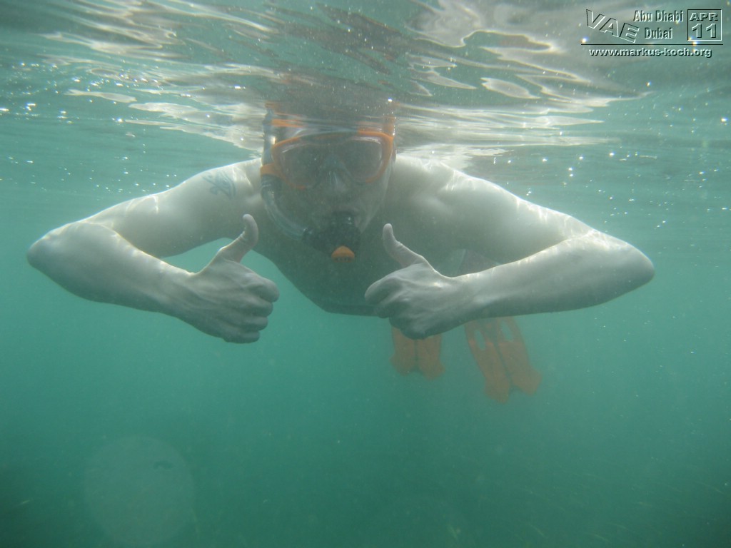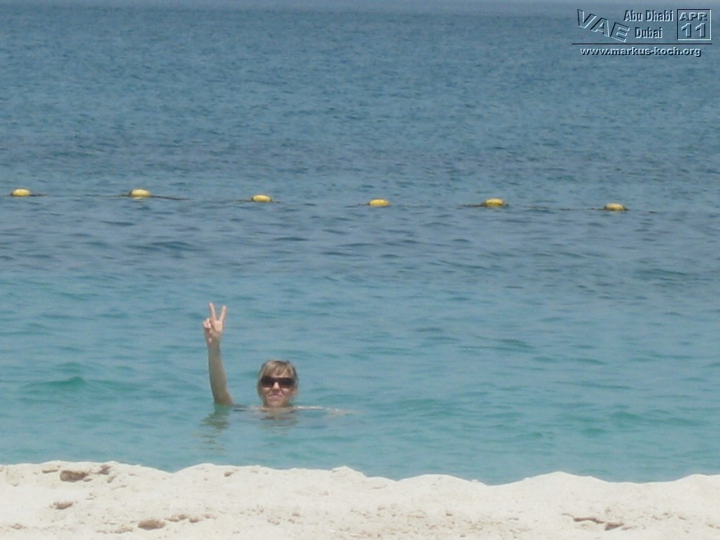 Super nach dem gutem Frühstücksbuffet im Hotel starteten wir zum Jumeirah Beach Park. Dort hatten wir feinsten, weißen Sandstrand und kristallklares Wasser mit Ausblick auf das Burj Al Arab und dem Burj Khalifa im Hintergrund. Kaum dort angekommen läuft mir ein Arbeitskollege aus Frankfurt (Ali) über den Weg. So klein ist die Welt – echt cool!