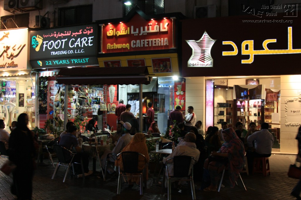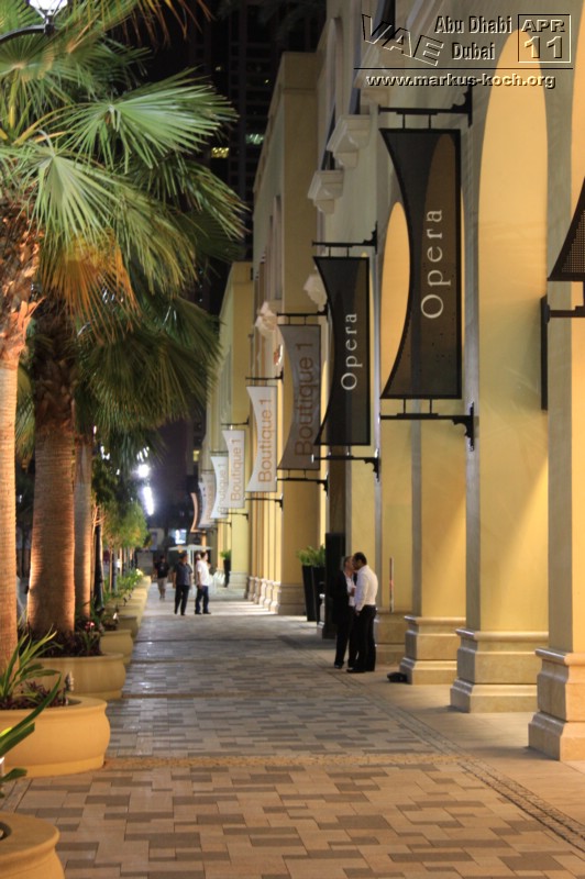 Anschließend besuchten wir kurz „The Walk“ – leider waren die Geschäfte schon zu (bis 22 Uhr offen). Ca. 10 Minuten mit dem Taxi vom Madinat Jumeirah ist The Walk (Marina) entfernt. Vergleichbar ist The Walk mit einer Open Air Mall für Gutbetuchte.
