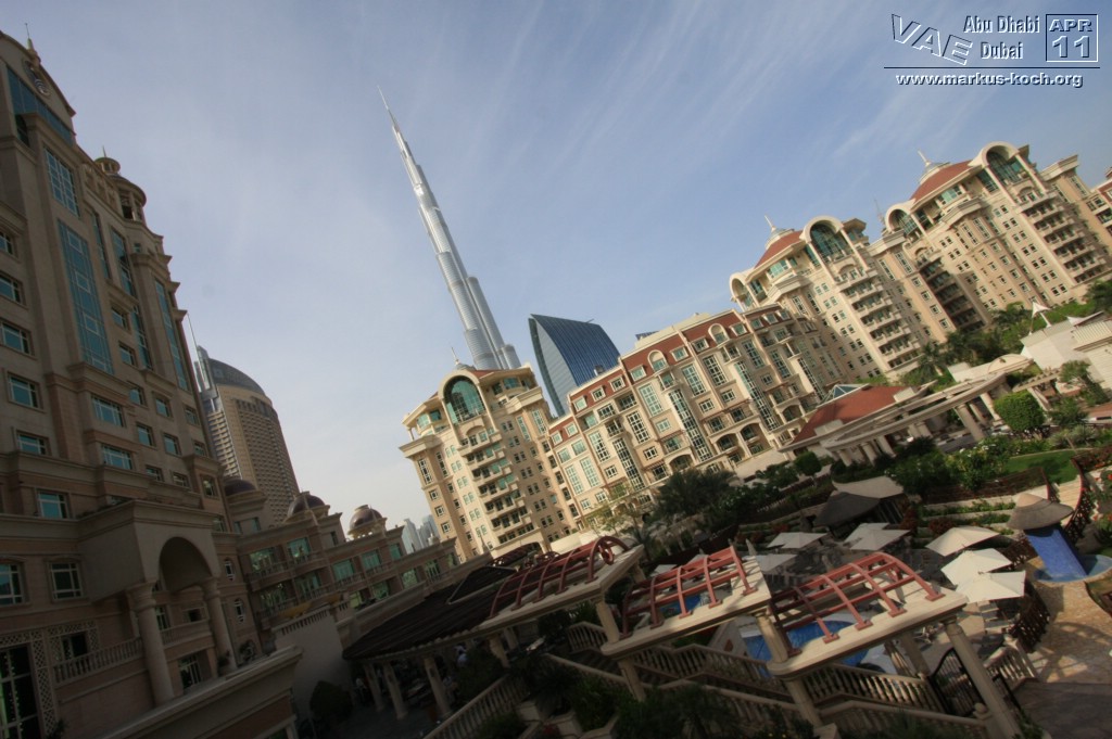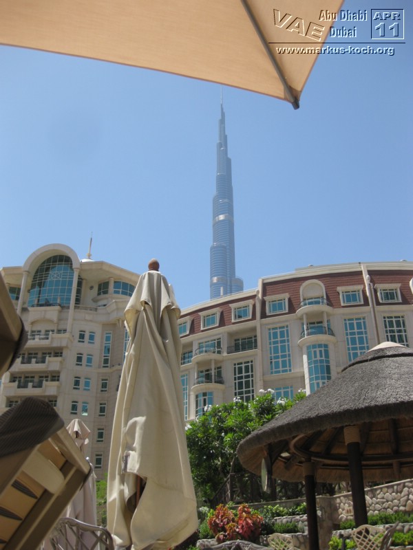 Andi musste an diesem Tag arbeiten und Eva hat Marie und mich erst zur Skihalle / Mall of Emirates gefahren und dann weiter zu unserem tollen Rotana Hotel „Al Murooj“ direkt neben dem höchsten Wolkenkratzer der Welt – dem 828 m hohem „Burj Khalifa“. Selbst von unserem Zimmer und unserer Terrasse konnten wir dieses enorme Bauwerk jederzeit betrachten!
