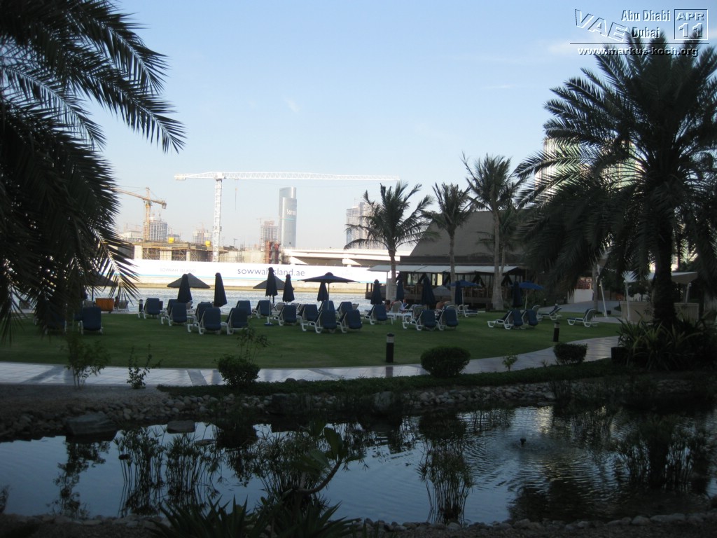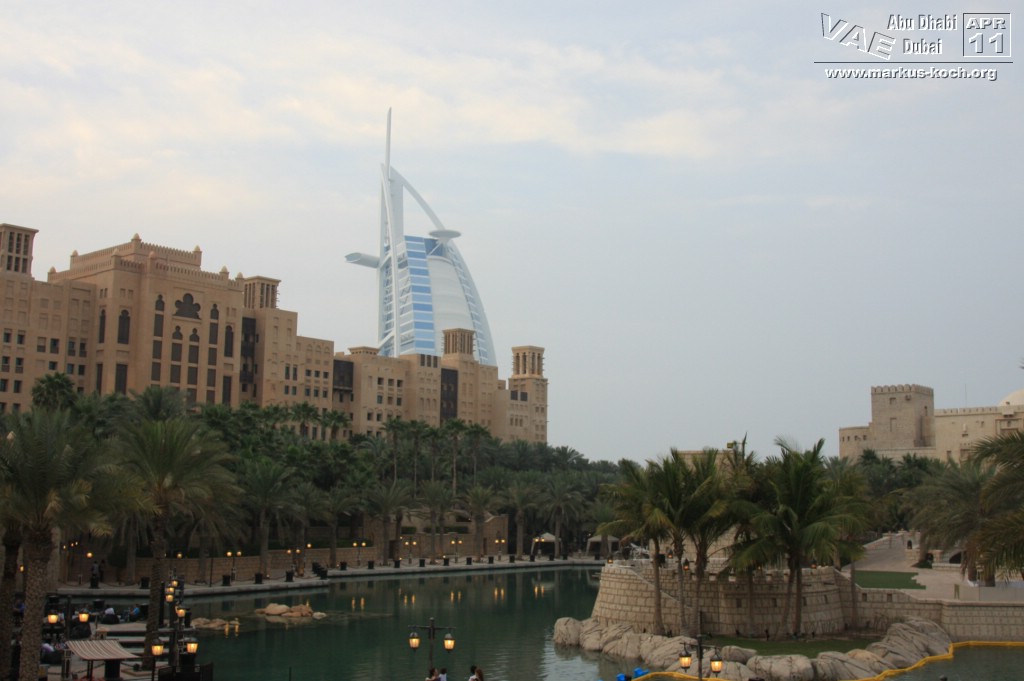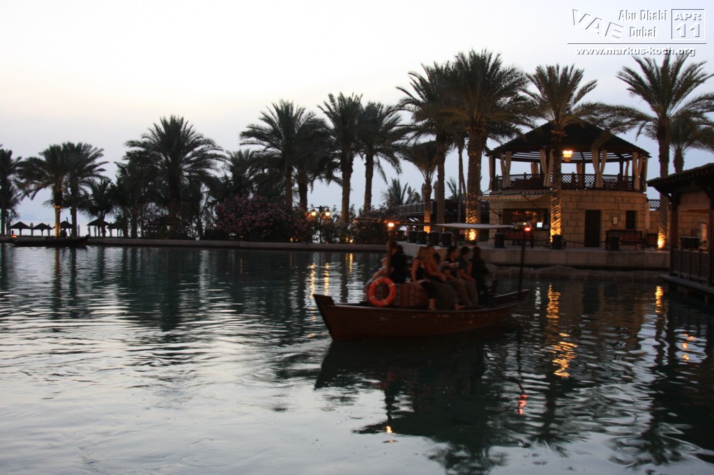 Die Gartenanlage erinnert ein wenig an Venedig. Von Hotel zu Hotel wird man in Abras – statt mit Gondeln – gefahren. Einfach so tun, als ob man ein Hotelgast ist und sich aufs Boot begeben und den Namen des nächsten Hotels als Fahrtziel angeben. Es fragt keiner nach Hotelkarte oder Zimmernummer. Einfach die Fahrt auf den Kanälen in der wunderbaren Kulisse von 1001 Nacht genießen. Wir sind sogar mehrmals hin und her gefahren.