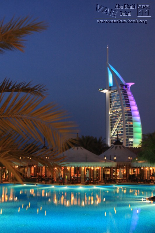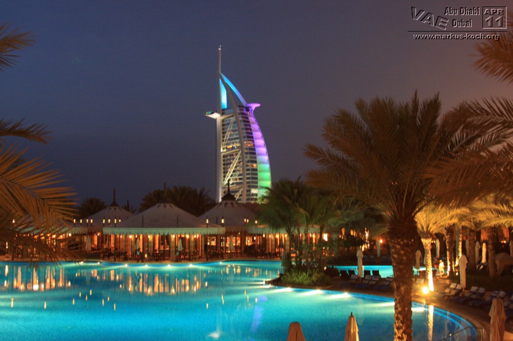Hier hatte man auch einen super Ausblick auf das wechselfarbig beleuchtete Burj Al Arab – genial für Bilder!