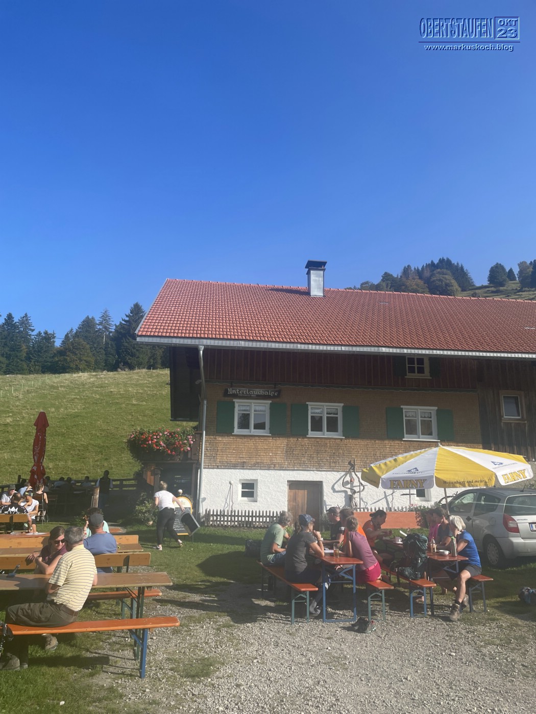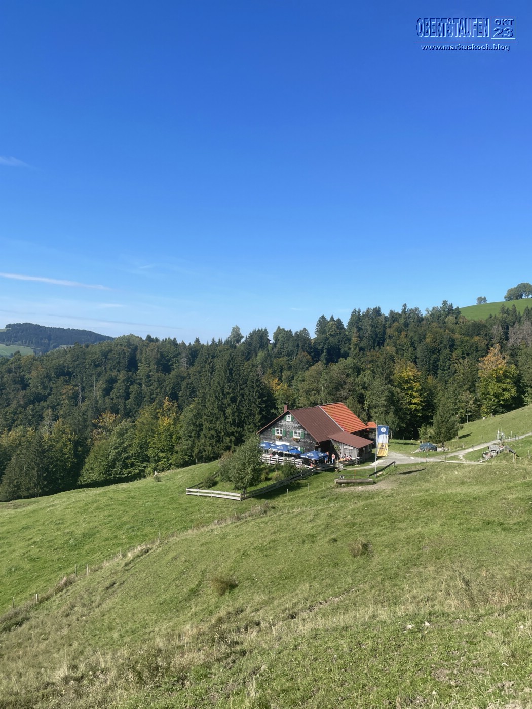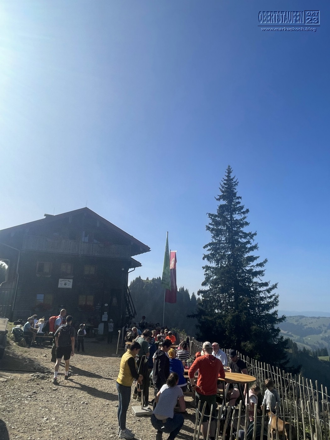 Gefrühstückt habe ich im Hotel mit Klempaus. Dies war extern möglich. Am Mittag liefen wir dann gemeinsam von Oberstaufen zur Alpe Mohr. Super Aussicht, super Essen, Livemusik (wobei die eher schrecklich war) und gute Stimmung.