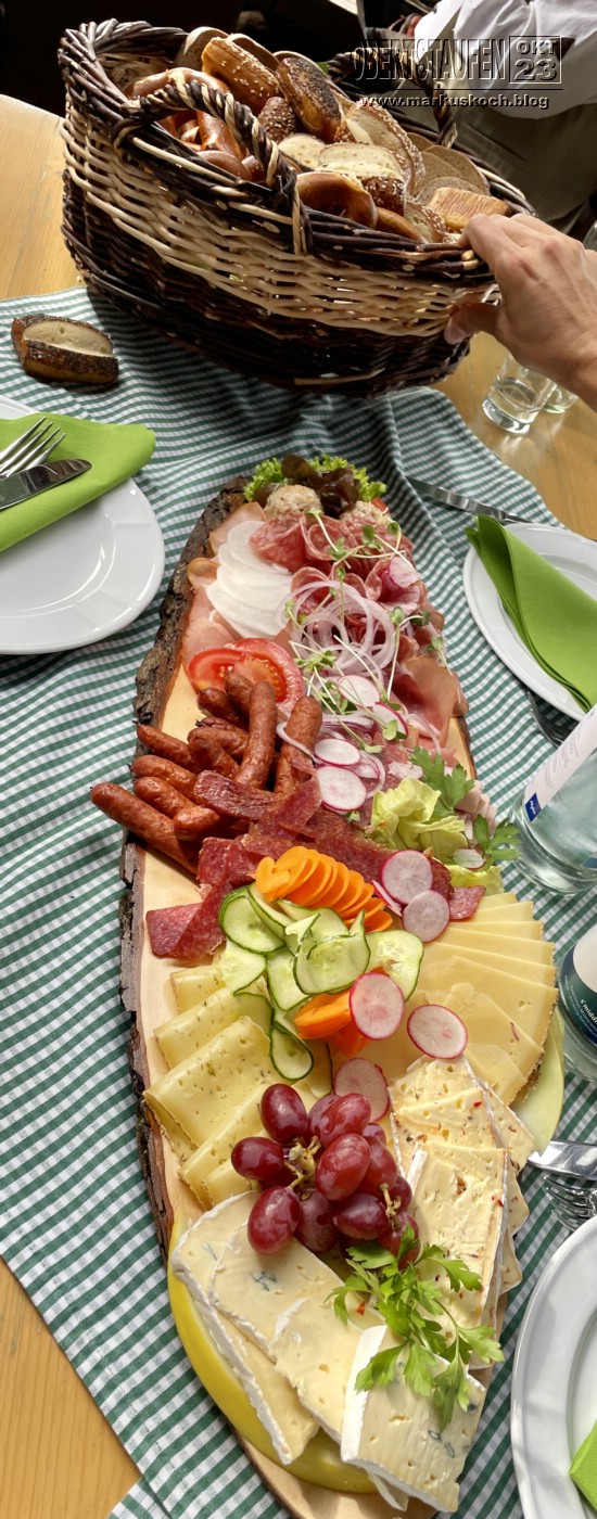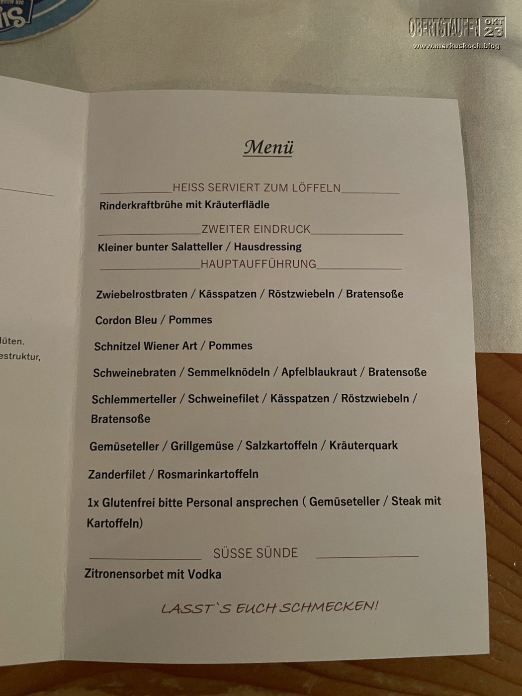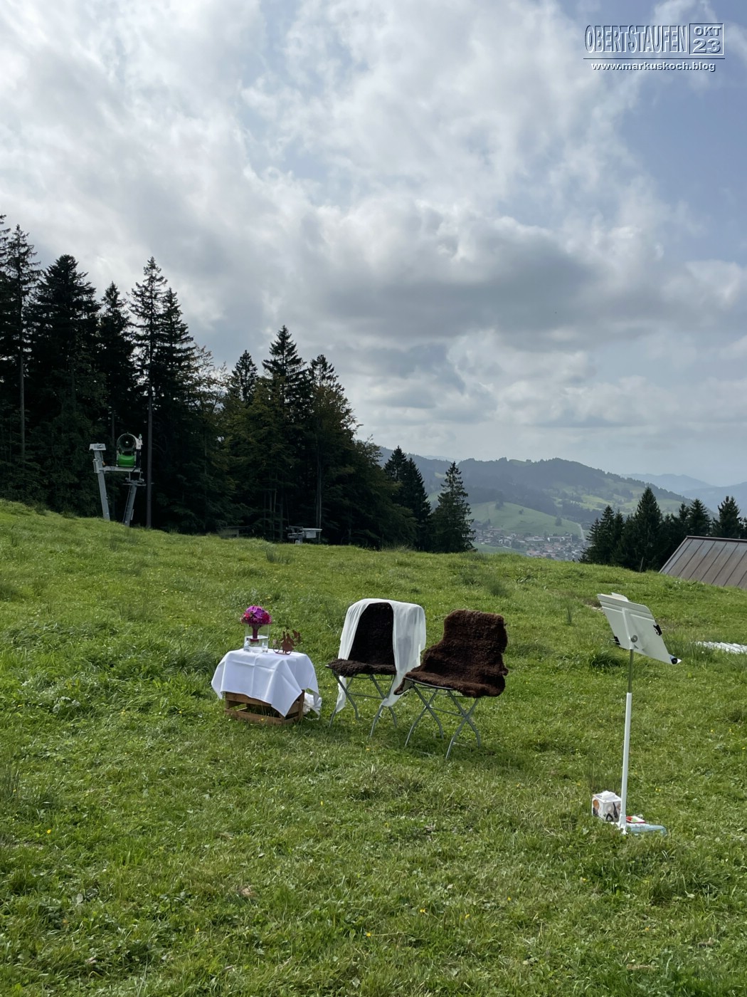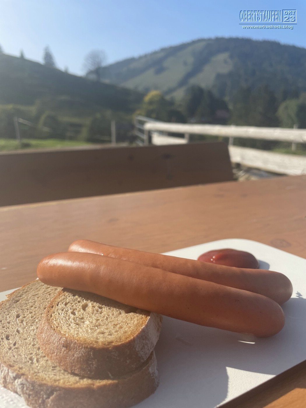 Gefrühstückt habe ich im Hotel mit Klempaus. Dies war extern möglich. Am Mittag liefen wir dann gemeinsam von Oberstaufen zur Alpe Mohr. Super Aussicht, super Essen, Livemusik (wobei die eher schrecklich war) und gute Stimmung.