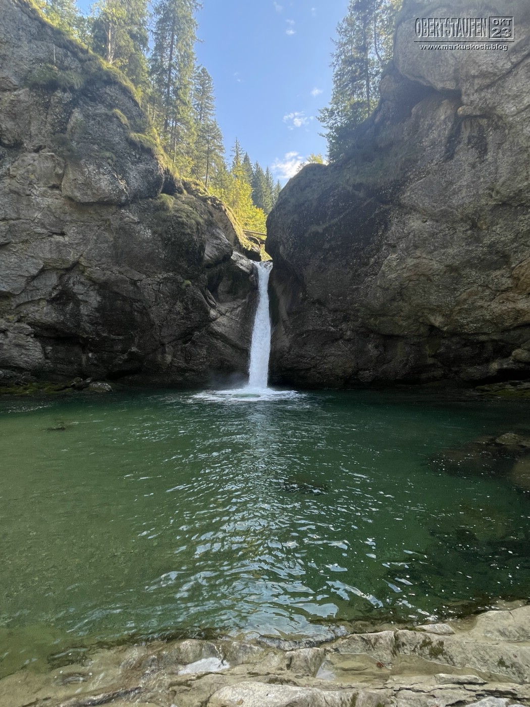 Nach Feierabend fuhr ich dann zum WoMo Stellplatz (17€) in Steibis neben Oberstaufen. Dort war ein herrlicher Blick ins Allgäu. Das schöne Wetter verleitete mich noch eine Wandertour zu den Buchenegger Wasserfälle zu unternehmen.