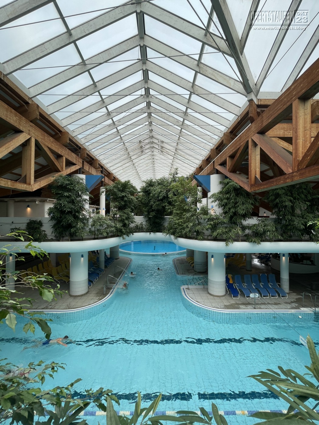 Los ging der Tag übrigens mit dem Besuch in der Therme dort, um zu duschen. Die Saunen waren auch schon angeheizt. Mit etwas Glück hätte ich sogar die Beiden enttarnt, da der Blick auf Standesamt möglich war.