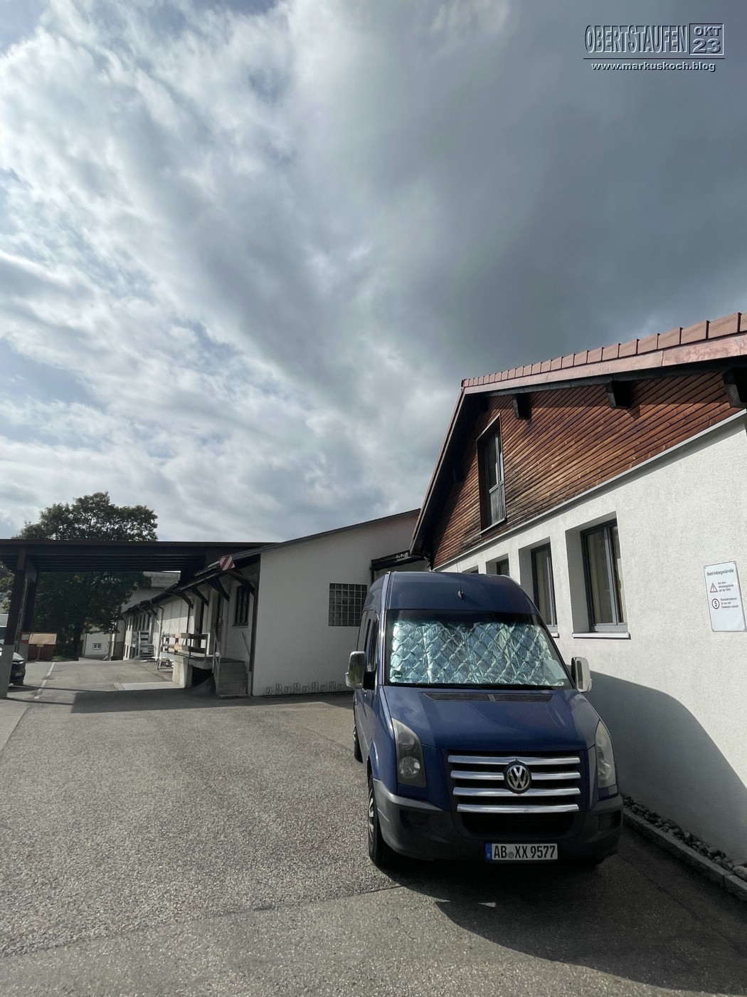 Übernachten durfte ich auf einem Parkplatz in der Nähe von einem Trachtenladen. Hat super funktioniert.