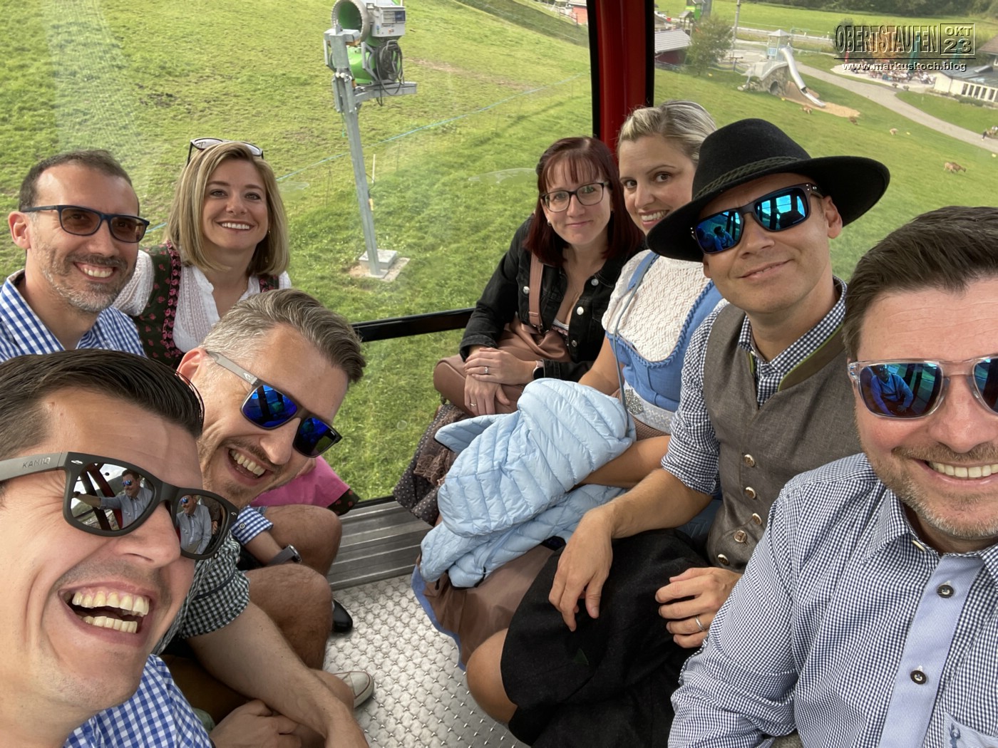 Erst sollte es mit der Bergbahn aufs Hündle zu Brotzeit & Livemusik gehen, dann Abendessen in der Apostel Alm und abschließend tanzen im Apostel – der Disco unter dem Restaurant.
