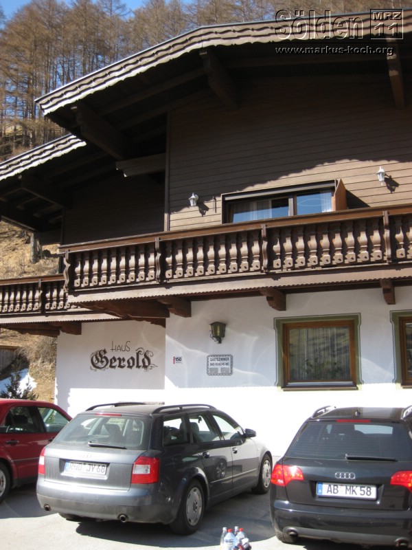 Die Fahrt nach Sölden war frei, nach 4,5 h hieß es in Sölden Zimmersuche. Nach einer Stunde haben wir dann ein echt super Zimmer im „Haus Gerold“, 300 m von der erneuerten Gaislachkogl-Bahn für 40 Euro inkl. Frühstück gefunden. Perfekt!
