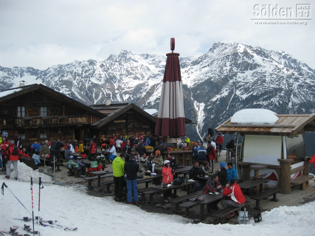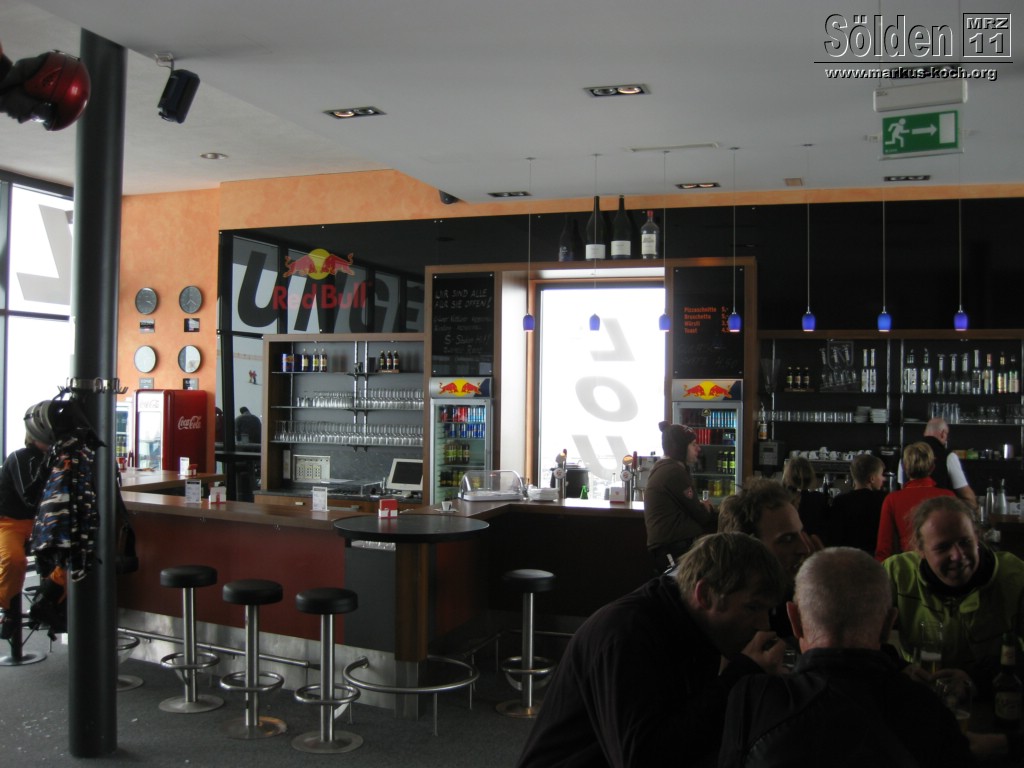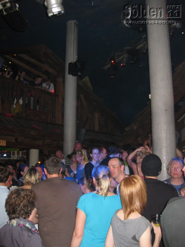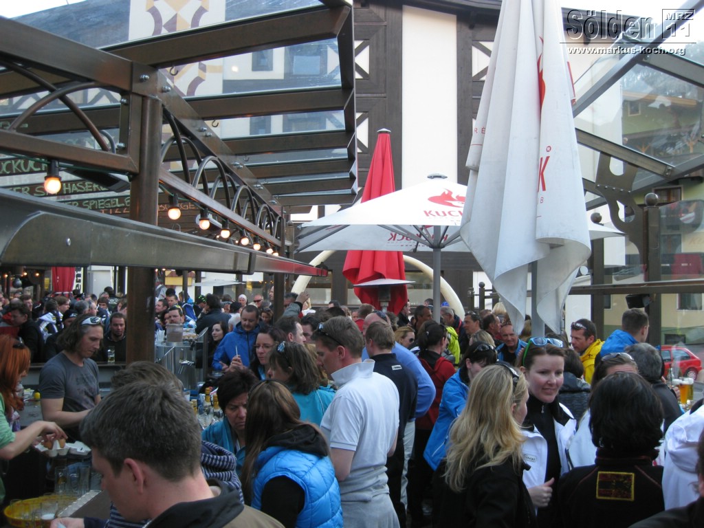 Die Talabfahrt machten wir auch zur Giggijoch-Talstation. Dort gibt es eine neue Apres-Ski Location „Kuckuck“. War aber jetzt nicht der Superkracher. Weiter in Skiklamotten – wir wollten uns ja nach Jahren Abstinenz von Sölden wieder auf den neusten Stand bringen. Dann kamen auf beiden Straßenseiten zwei Kneipen voll mit Holländern die – wie man sie auch kennt – abgefeiert haben. Als nächstes beim Hotel Liebe Sonne der Schirm… nicht mehr wie früher an der frischen Luft – nein – komplett umglast und überdacht. War auch viel los – vor allem Deutsche und Österreicher. Gegenüber im Fire&Ice war erst später am Abend voll. Es hat Alex C. (Christiansen) – bekannt von U96 – „Das Boot“ (1,2,3,Techno) aufgelegt. War aber nicht der Reiser! Dort waren wir nachdem wir uns umgezogen und geduscht hatten.