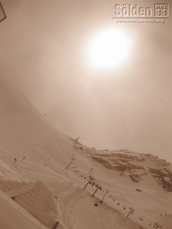 Um 9 Uhr ging es nach dem leckeren Frühstück wieder mit der Gaislachkogelbahn ins Skigebiet. Heute war das Ziel der Tiefenbachferner. Dort waren die Pisten einfach Traumhaft und ideal zum ungezwungen Carven auf weiter Flur! Einfach herrlich sich diese Pisten ohne zu denken hinabgleiten zu lassen! Gegen Mittag hat es ein wenig zugezogen und immer mal wieder im Wechsel mit der Sonne geschneit. Am Nachmittag ging es über den Rettenbachgletscher über die Talabfahrt (die noch möglich war J) zum Philipp (direkt an der Piste). Dort war ein bisschen was los und lernten ein Würzburger Pärchen kennen, die auch Leute aus Aschaffenburg kennen und schon einmal bei uns in AB zu Gast waren.