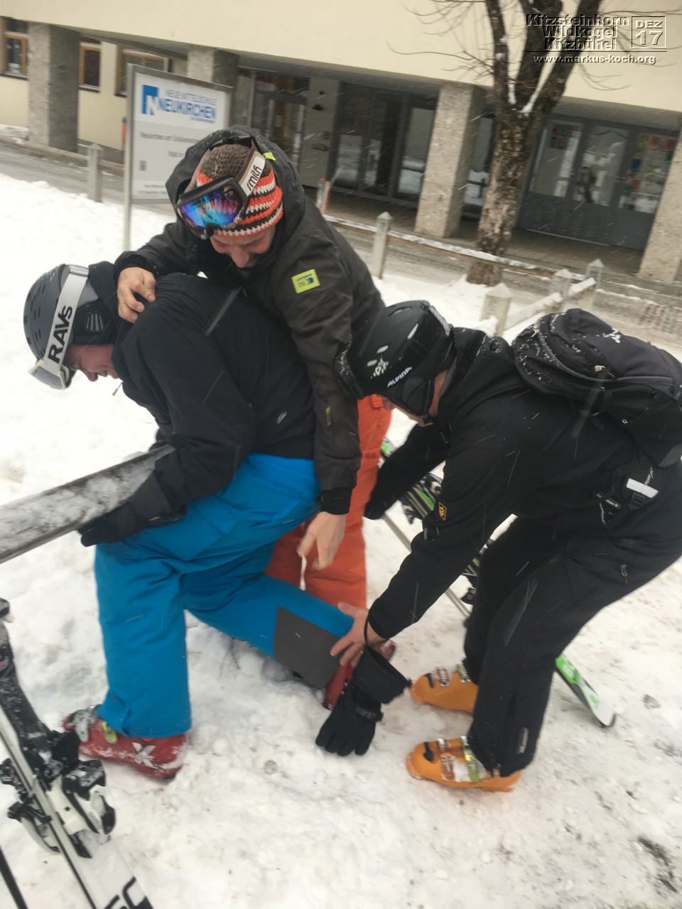 Glück war, dass die Pistenrettung zufällig kurz danach ihre Runde drehte. Udo wurde schließlich ins Zeller (am See) Krankenhaus gebracht. Glücklicherweise „nur“ 2 Rippen gebrochen, Platzwunde genäht & Gehirnerschütterung.