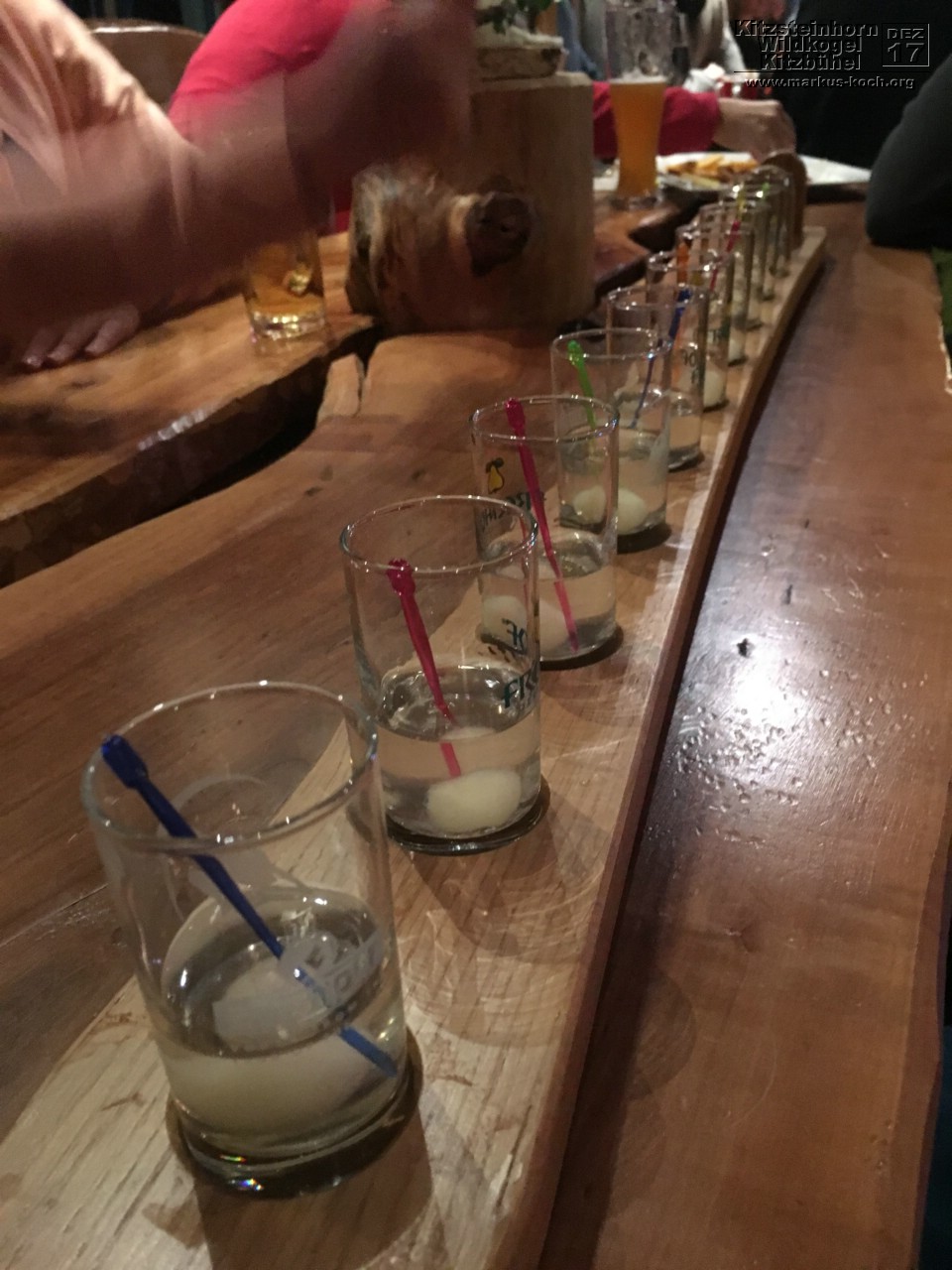 Erster Schnaps im Bergrestaurant, nach 7 km in der Bar ZwischenZeit gab es noch ein paar Bier und Essen.