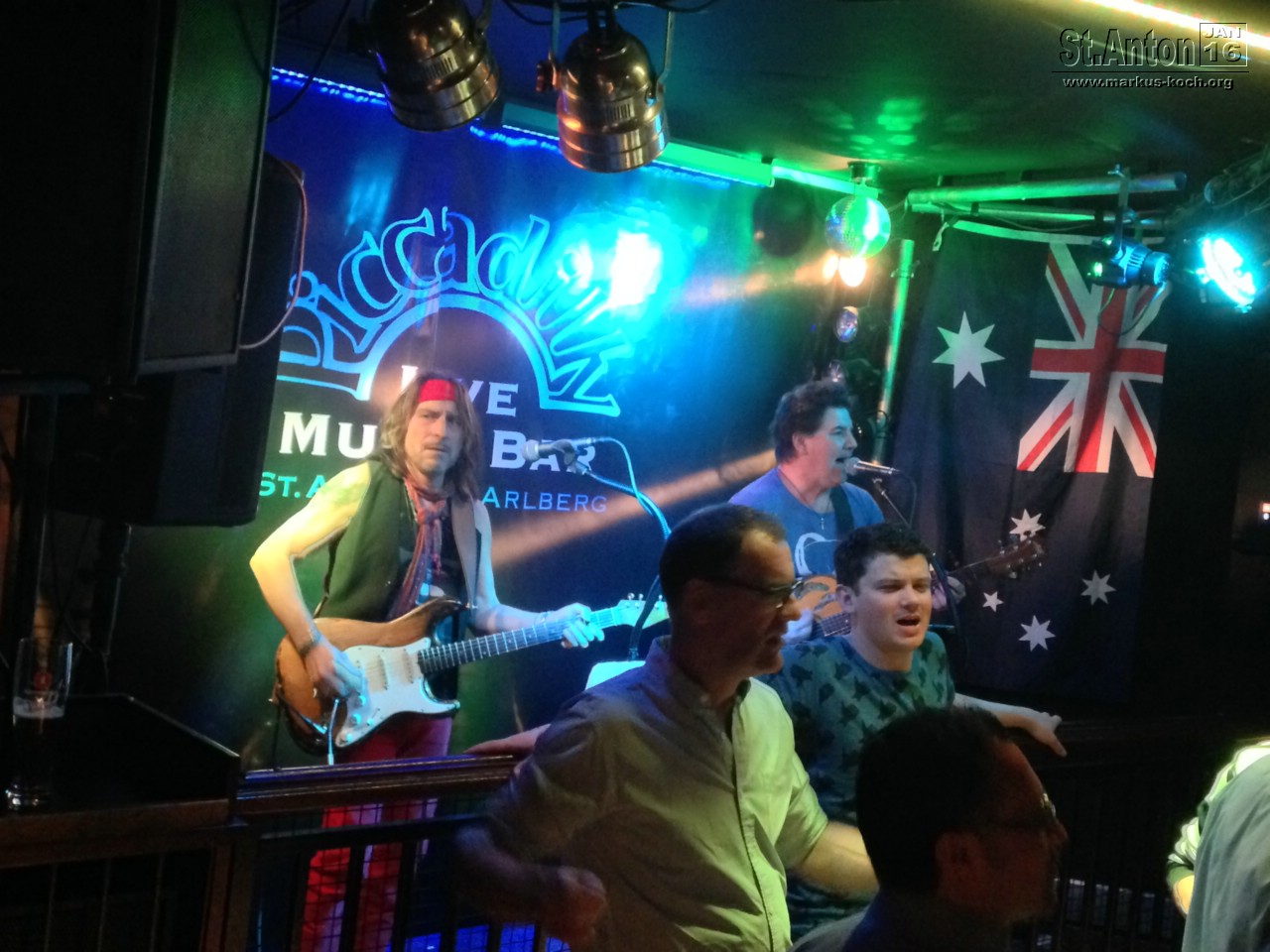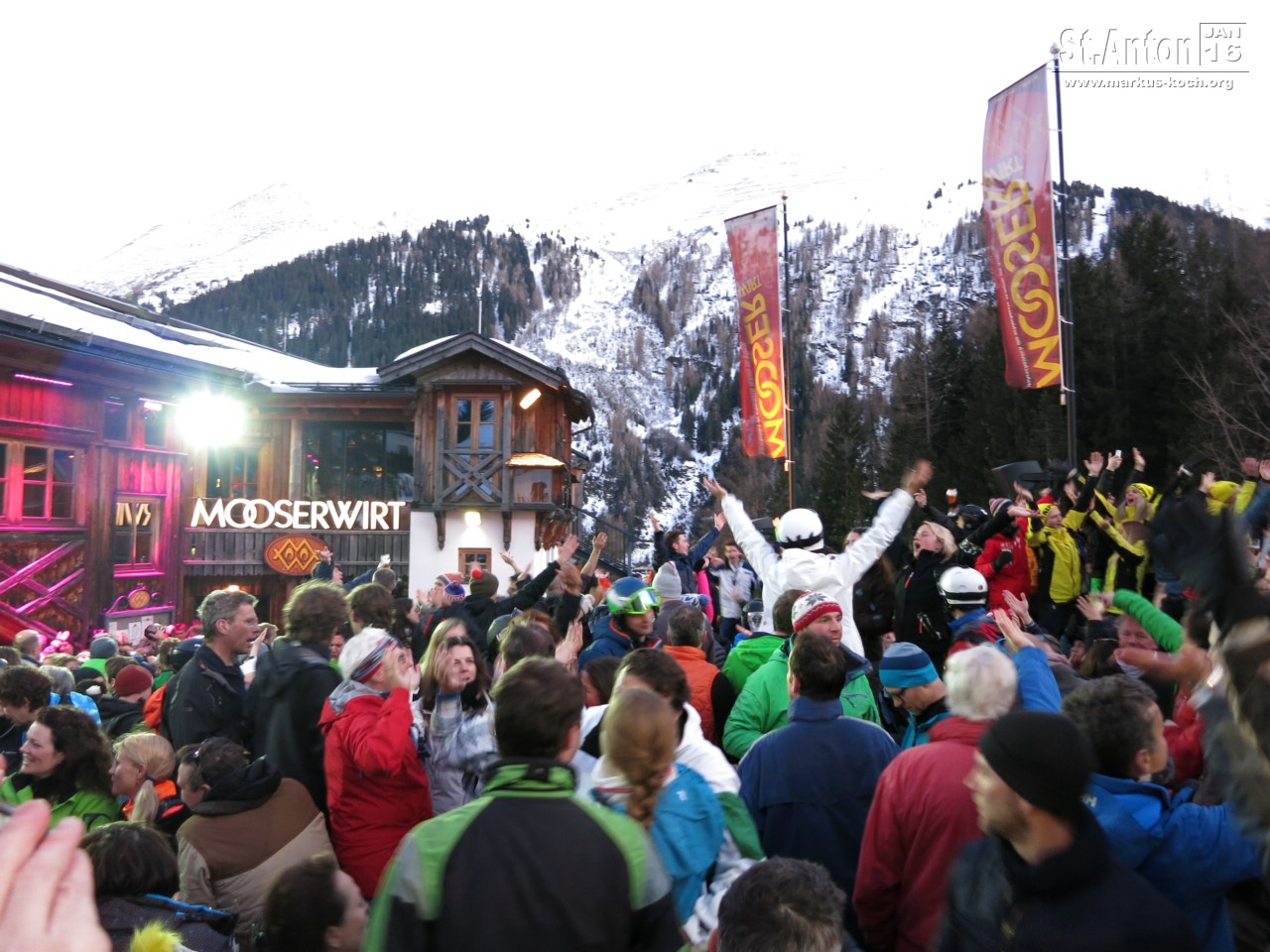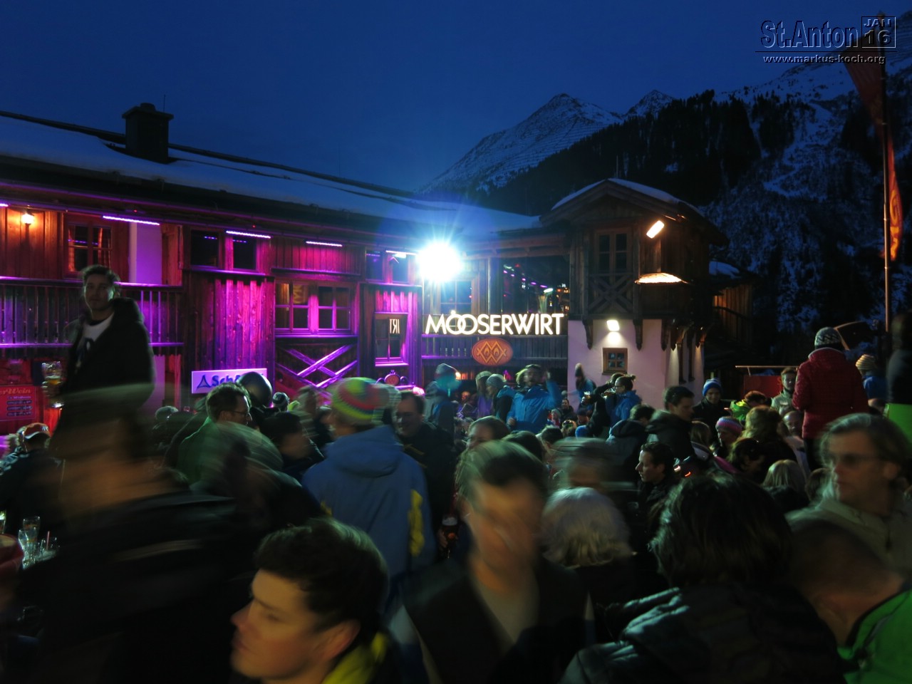 Apres-Ski beim Heustadl und Mooserwirt, danach Duschen, Essen und Abends nochmal in die Fußgängerzone von St. Anton.