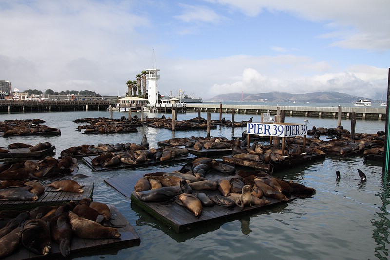 Zuerst ging es mit dem SUV zum Pier 39 (Fisherman’s Wharf), Frühstücken! – Da die Portionen eher der Größe eines Mittagesssen entsprachen, habe ich nichts bestellt und mir von den anderen 3 Jungs bisserl was schnappuliert. Danach sind wir über das Pier 39 gelaufen um uns die stinkigen und röhrenden Seelöwen, die da faul in der Sonne herumlagen anzusehen. Von dort sah man auch schon ALCATRAZ – für Montag haben wir uns gleich Karten für eine Tour auf diese historisch behaftete Insel gesichert.