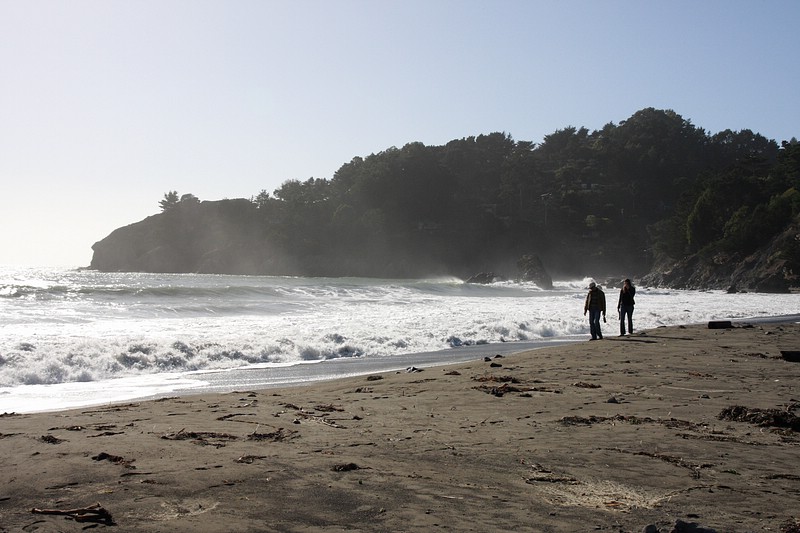 Weiter ging es auf der Tour zu den Muir Woods – *lach* nachdem wir falsch abgebogen sind, waren wir auf einmal am Muir Beach. Dort hatten wir sozusagen den „first Contact“ mit dem Pazifik. Für alle war es das erste Mal am Pazifik 🙂 Nach dem kurzen Halt, fuhren wir dann zu den Muir Woods, wenn wir sie denn gefunden hätten *G* Irgendwo im Landesinneren beschlossen wir wieder umzukehren und fanden dann später heraus, dass wir wohl am richtigen Parkplatz vorbeigefahren sind. LOL. Naja, pech gehabt, auch so waren die Wälder dort sehr hübsch 😉