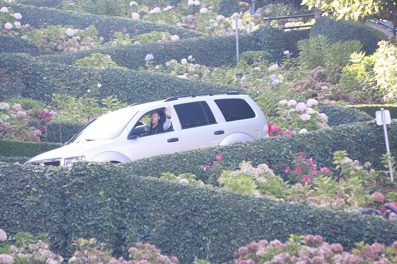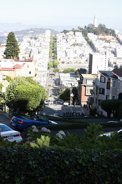 Anschließend fuhren wir zur Lombard Street. Dort kennt man das krümmste, kurvenreichste Stück Straße auch als Postkartenmotiv. Die Straße sind wir zweimal herunter gefahren. Ein wahres Erlebnis, genauso wie die Parallelstraße, welche das – soweit ich weiß – das stärkste Gefälle der Welt aufweist *genial*